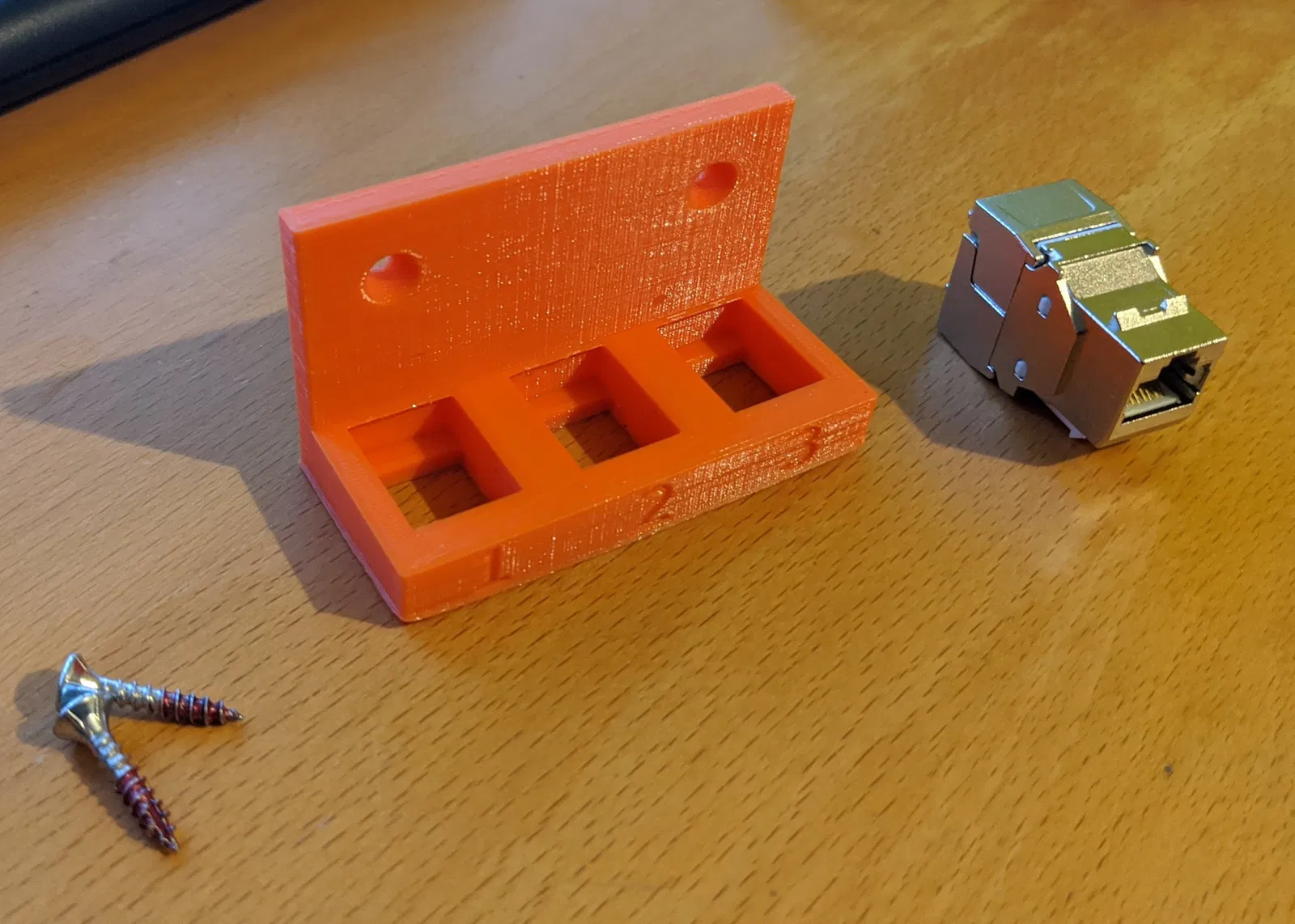 Đây là một giá đỡ keystone tùy chỉnh gắn tường từ https://thingiverse.com/thing:6647.