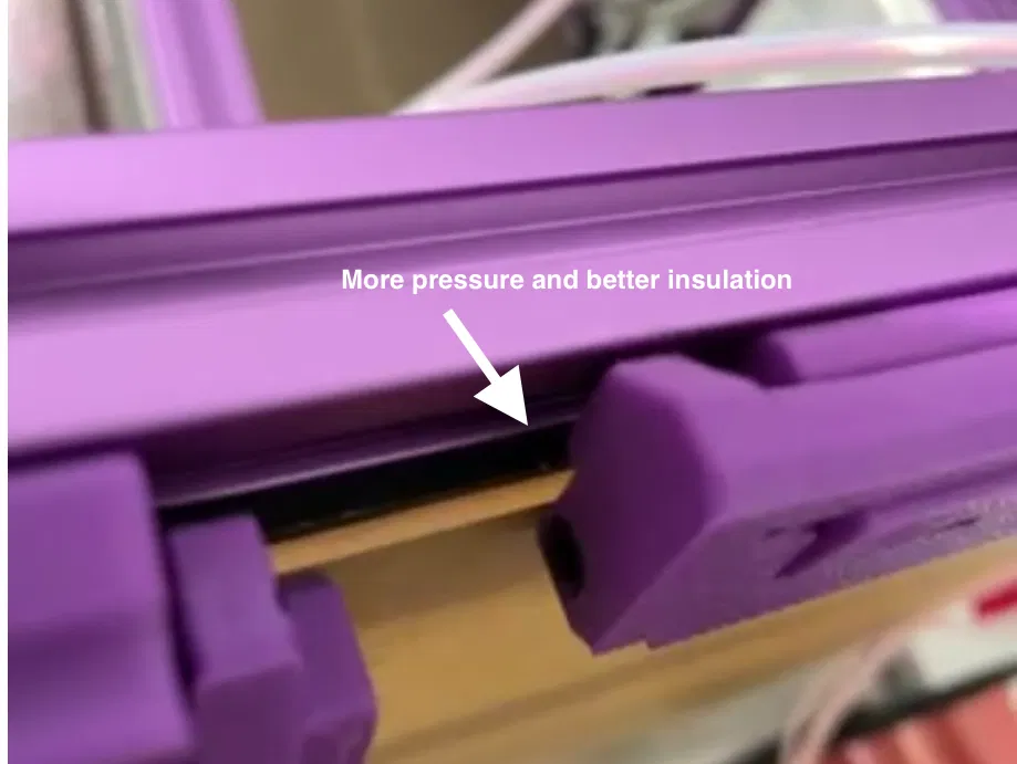 - Bản lề ngoài chắc chắn hơn - đường kính 8mm thay vì 5mm: Mình đã điều chỉnh cad để tùy chỉnh đường kính bản lề ngoài. Nó cho phép tạo ra áp lực lớn hơn lên các tấm panel mà không bị mỏi nhựa.
