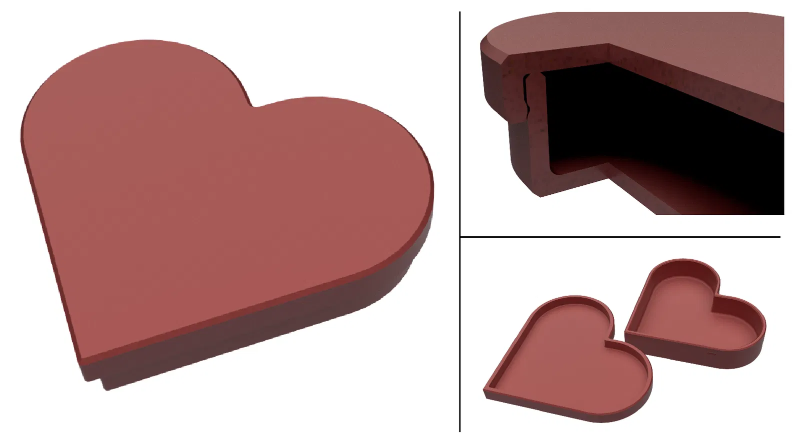Hộp hình trái tim đơn giản để đựng quà nhỏ cho Lễ Tình Nhân. Có cơ chế bấm để đậy nắp.