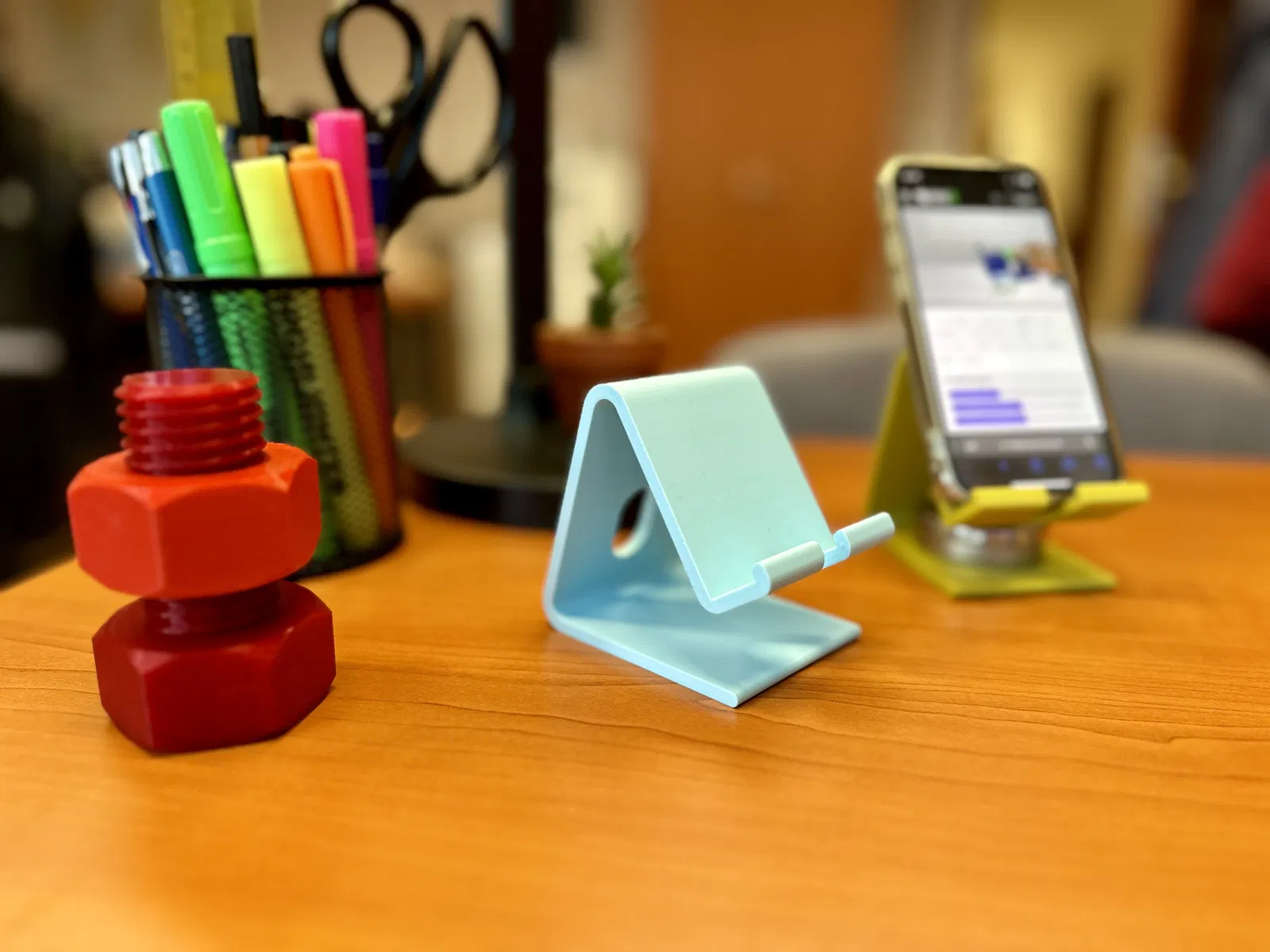 Tôi đã thiết kế cái đế giữ điện thoại đơn giản này, dễ in, có hỗ trợ sẵn. Cài đặt tiêu chuẩn, đầu phun 0.4mm, độ điền 15%, 2 lớp vỏ. Là món quà nhỏ tuyệt vời cho đồng nghiệp.