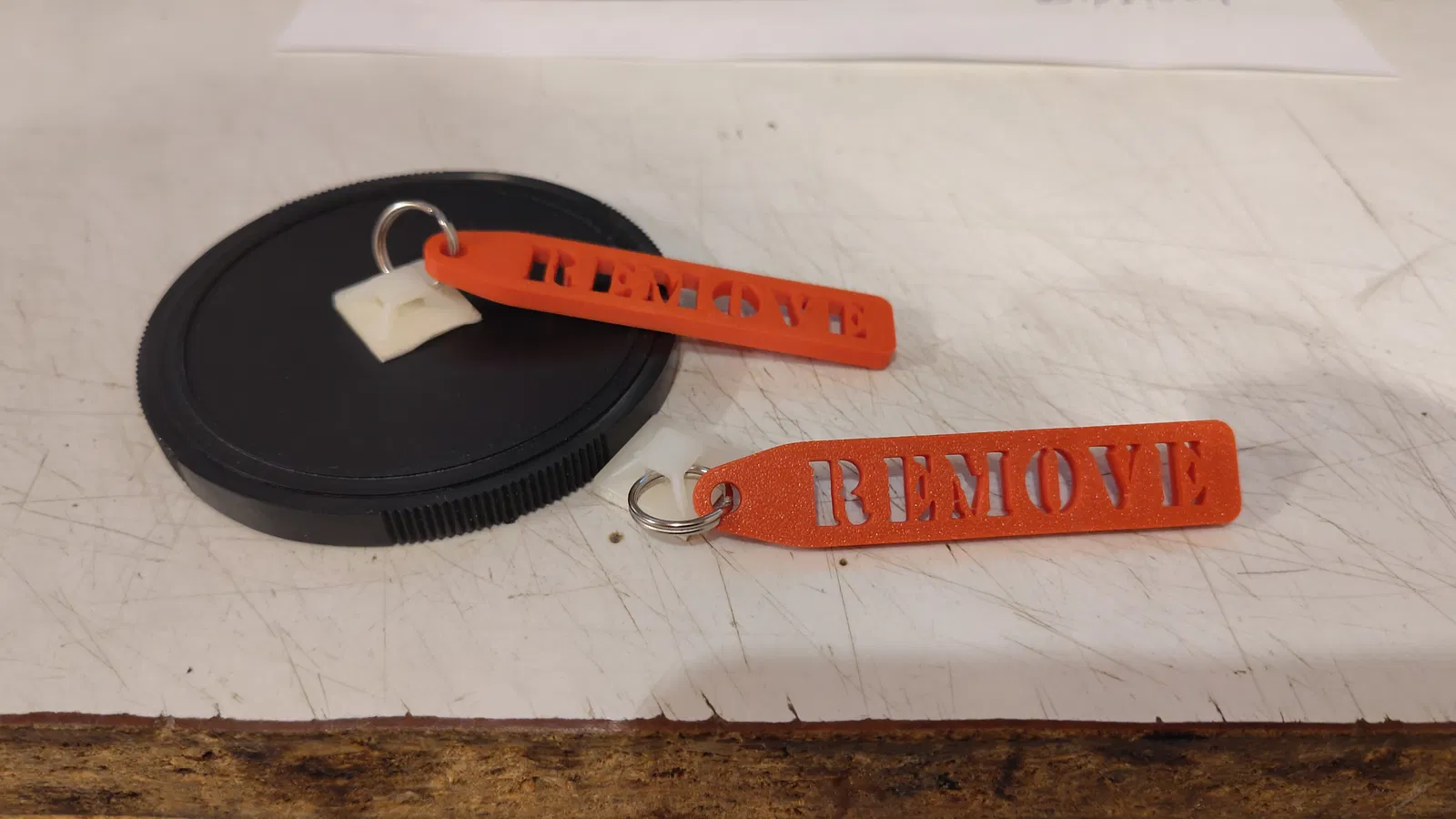 Thẻ "Remove before Flight" dùng để gắn vào nắp che ống kính máy khắc laser fiber. Giúp bạn không quên tháo nắp che trước khi khắc, lấy cảm hứng từ các thẻ an toàn hàng không. Chất liệu PLA.