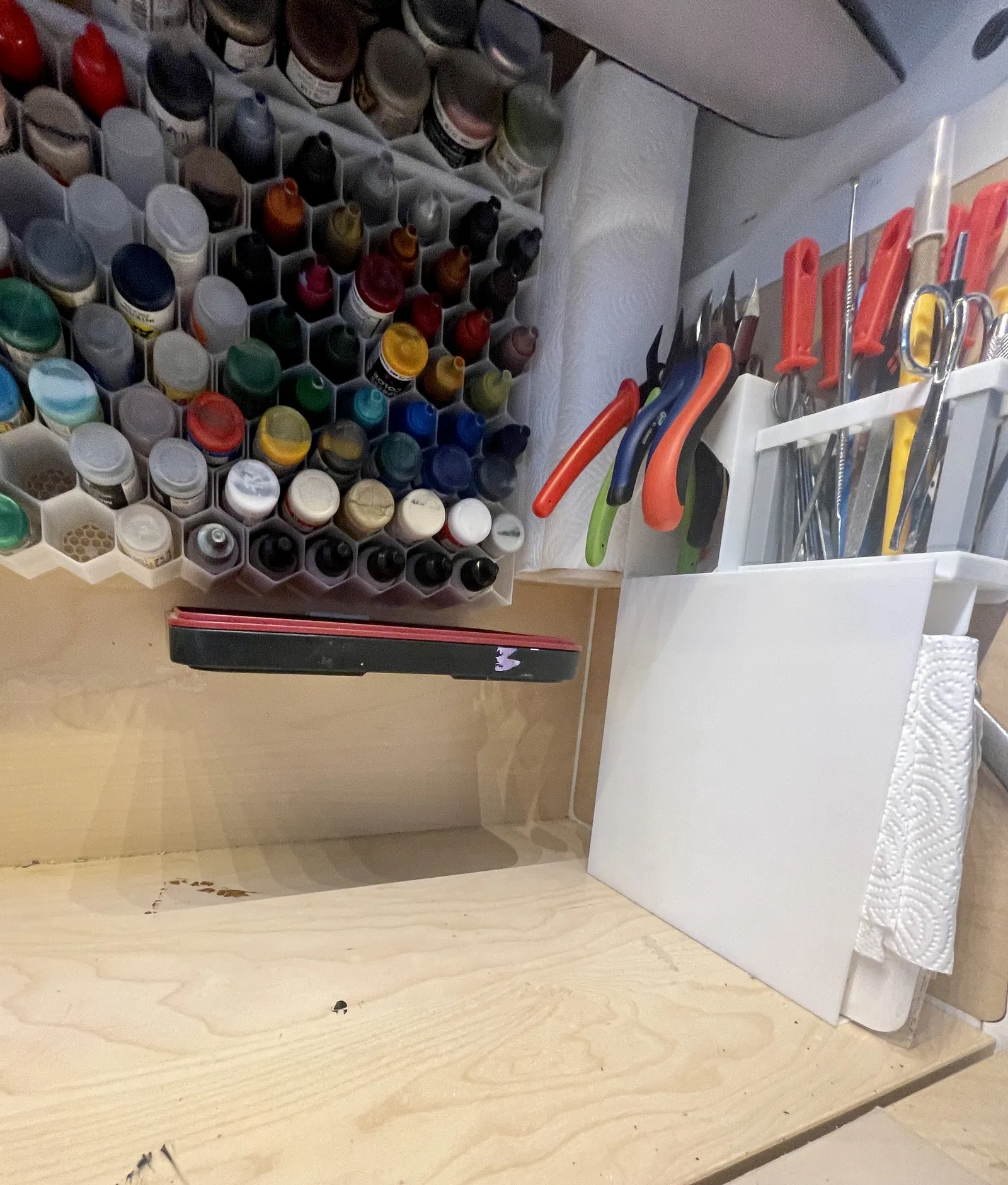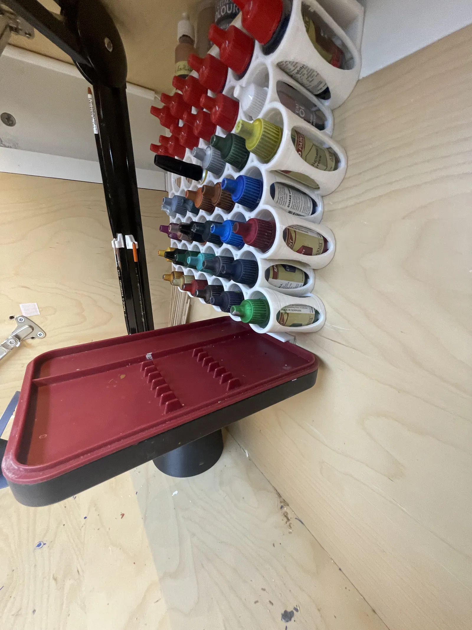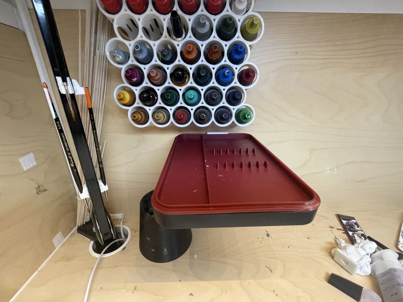 Tui có một khu vực để làm đồ thủ công rất nhỏ nên cần tận dụng không gian bàn làm việc có sẵn một cách hiệu quả. Hầu hết các vật dụng của tui đều được treo lên tường nếu có thể. Lúc trước để cái khay ướt (wet palette) ra khỏi bàn không dễ dàng… cho đến bây giờ. Tui đã làm cái giá treo tường nhỏ và đơn giản này cho cái khay ướt của Army Painter. Nó chỉ tương thích với nắp màu đỏ (cái nắp đen phụ kia đối với tui thì chỉ vướng thôi.) Giá treo này xài được với cả cạnh dài hoặc cạnh ngắn của khay. 0.4 nozzle, 0.2 layer, PETG Lưu ý thiết kế này tương thích với bộ chèn khay vân của tui /3d-model/de-locirc-trocircn-son-texture-cho-khocircng-gian-uon-uot-army-painter Cập nhật 3/2/2024: Tui đã cập nhật thiết kế để vừa khít hơn và sửa lỗi nghiêng về phía trước của thiết kế v1 cũ. Mẫu v3 giờ đây nên để khay ở góc 0 độ xung quanh. Tất cả các bộ phận in 3D được sử dụng trong dự án tổ chức bàn làm việc này: Giá treo sơn chai nhỏ giọt gắn tường của ATree | Tải mô hình STL miễn phí | Printables.com Chân đế sơn chai nhỏ giọt (35mm) của ATree | Tải mô hình STL miễn phí | Printables.com Nắp che bản lề gấp Ikea PS 2014 của ATree | Tải mô hình STL miễn phí | Printables.com Giá đỡ cọ vẽ hoặc dụng cụ - tối đa 28 cây cọ của ATree | Tải mô hình STL miễn phí | Printables.com Hộp có ngăn kéo tùy chỉnh theo tham số của Yanev | Tải mô hình STL miễn phí | Printables.com Có lẽ là tay cầm vẽ thoải mái nhất hiện có của flossi - Thingiverse Giá đỡ cọ của Ratthy - Thingiverse Chậu đựng nước pha sơn của arnaud vgr | Tải mô hình STL miễn phí | Printables.com Giá đỡ MagSafe iPhone 12 mini của dreamseed - Thingiverse Bộ ngăn kéo và hộp chia vạch rất đặc biệt của ATree | Tải mô hình STL miễn phí | Printables.com Giá đỡ kìm cho dự án bàn làm việc Ikea PS2014 của ATree | Tải mô hình STL miễn phí | Printables.com Giá treo giấy ăn - dọc - Dự án bàn làm việc Ikea PS2014 của ATree | Tải mô hình STL miễn phí | Printables.com Bản độ bàn Ikea PS2014: Thứ ký Ikea PS 2014 này có vài bí mật - IKEA Hackers