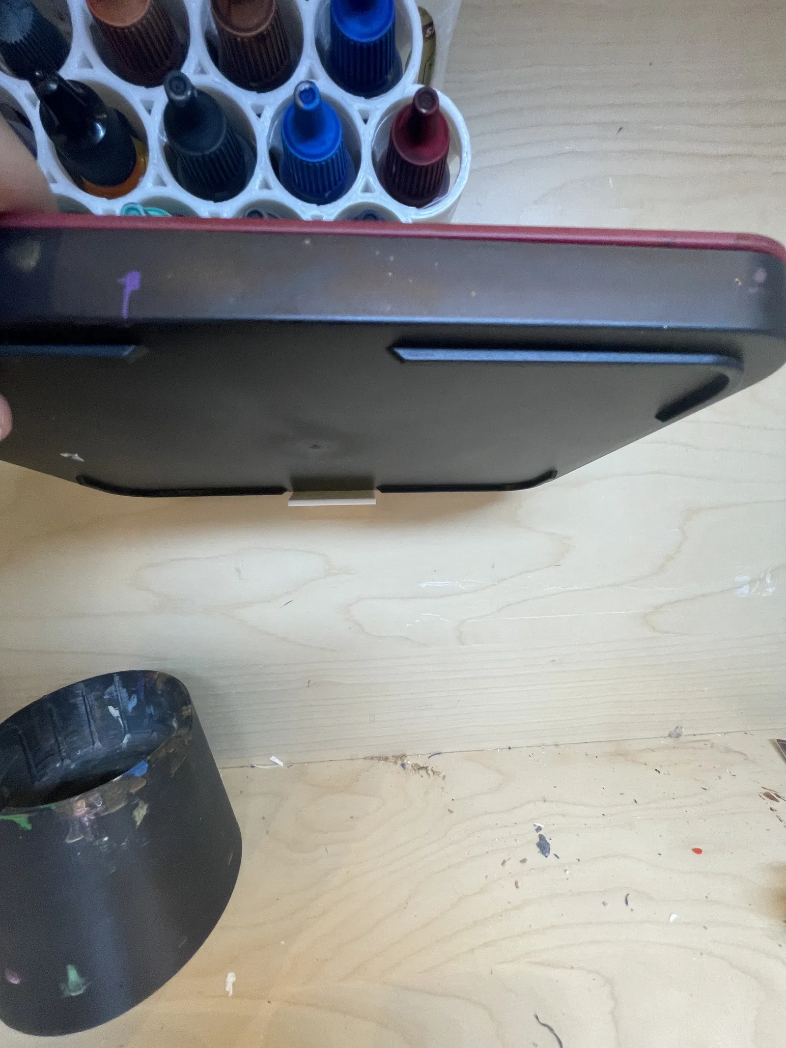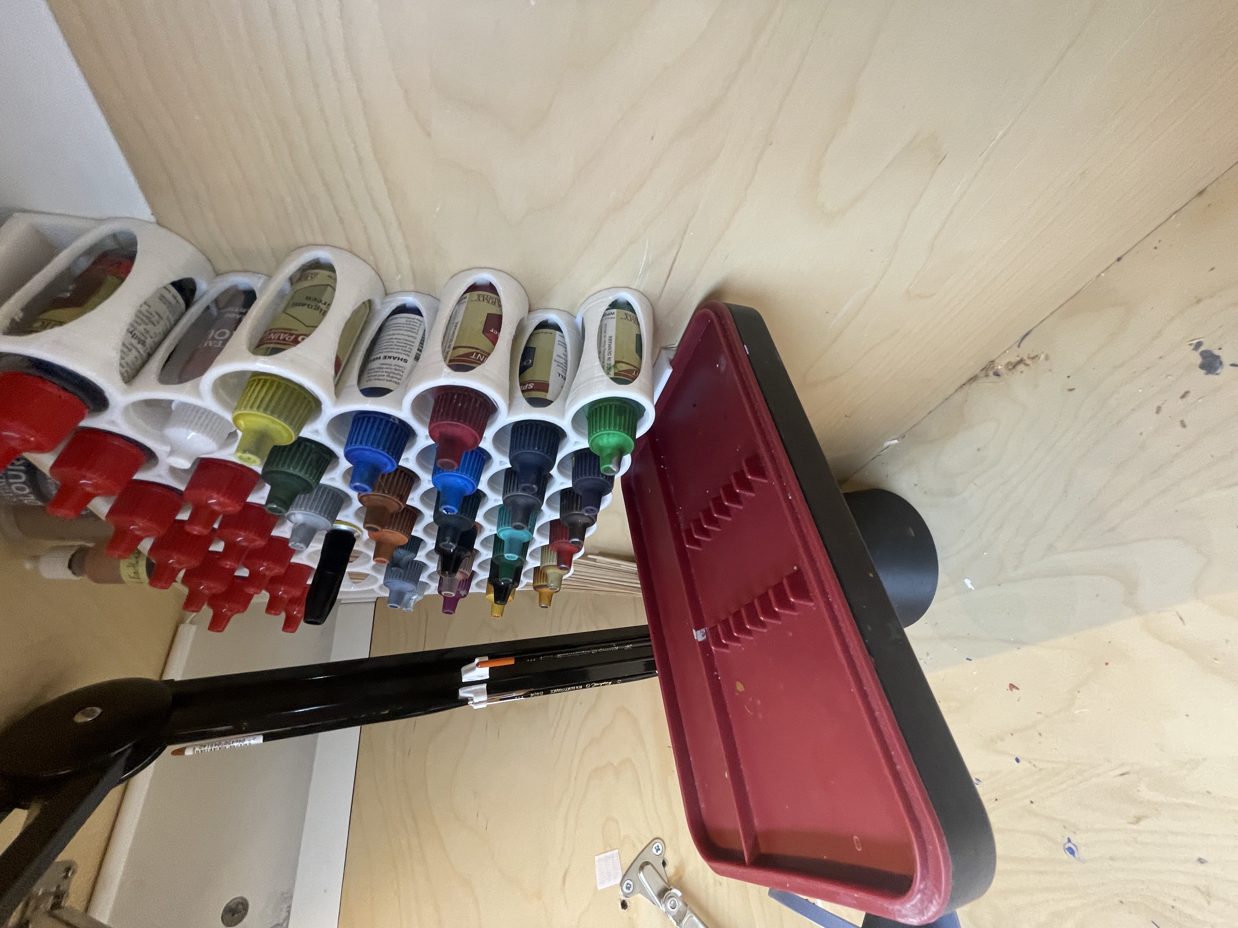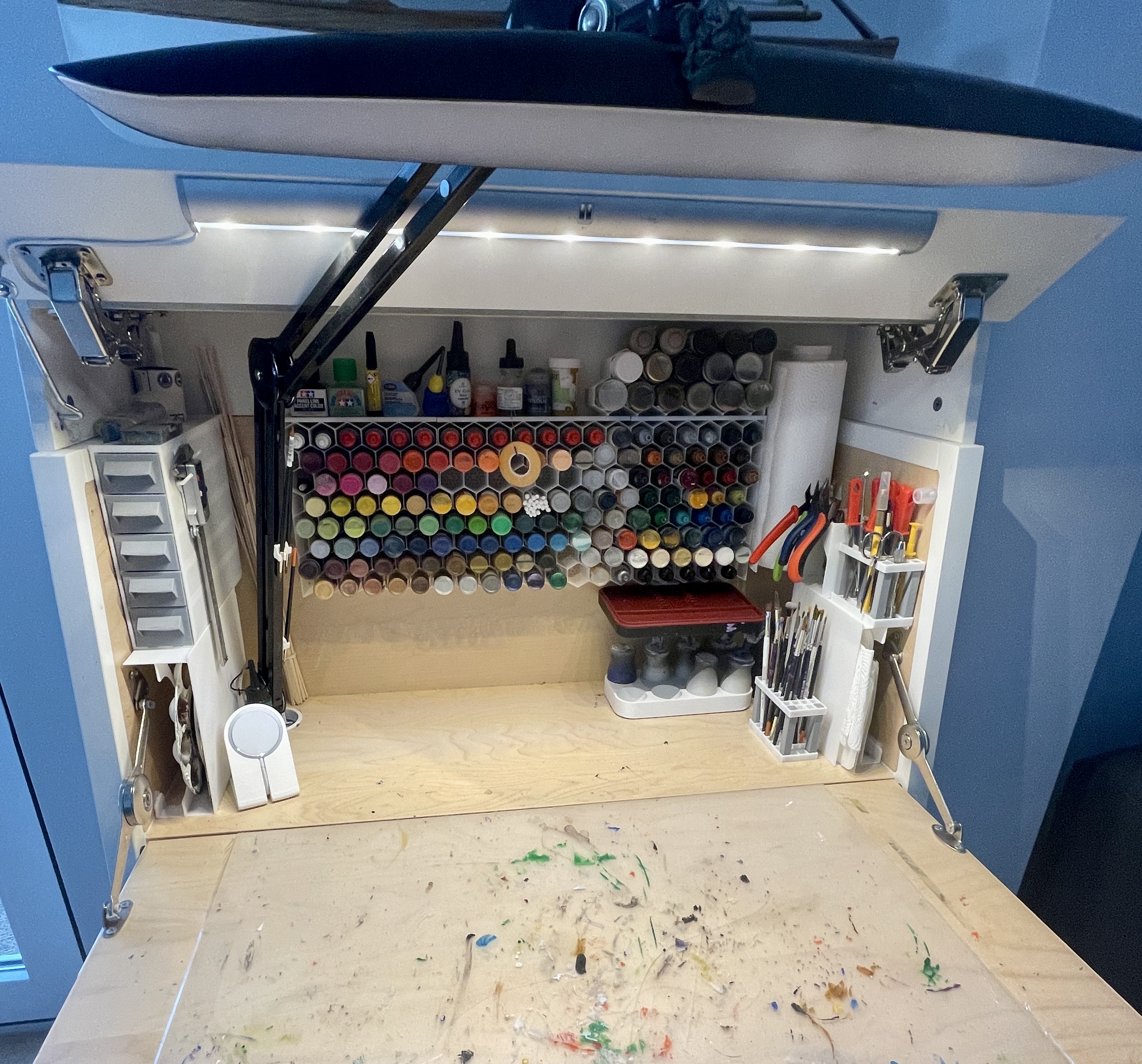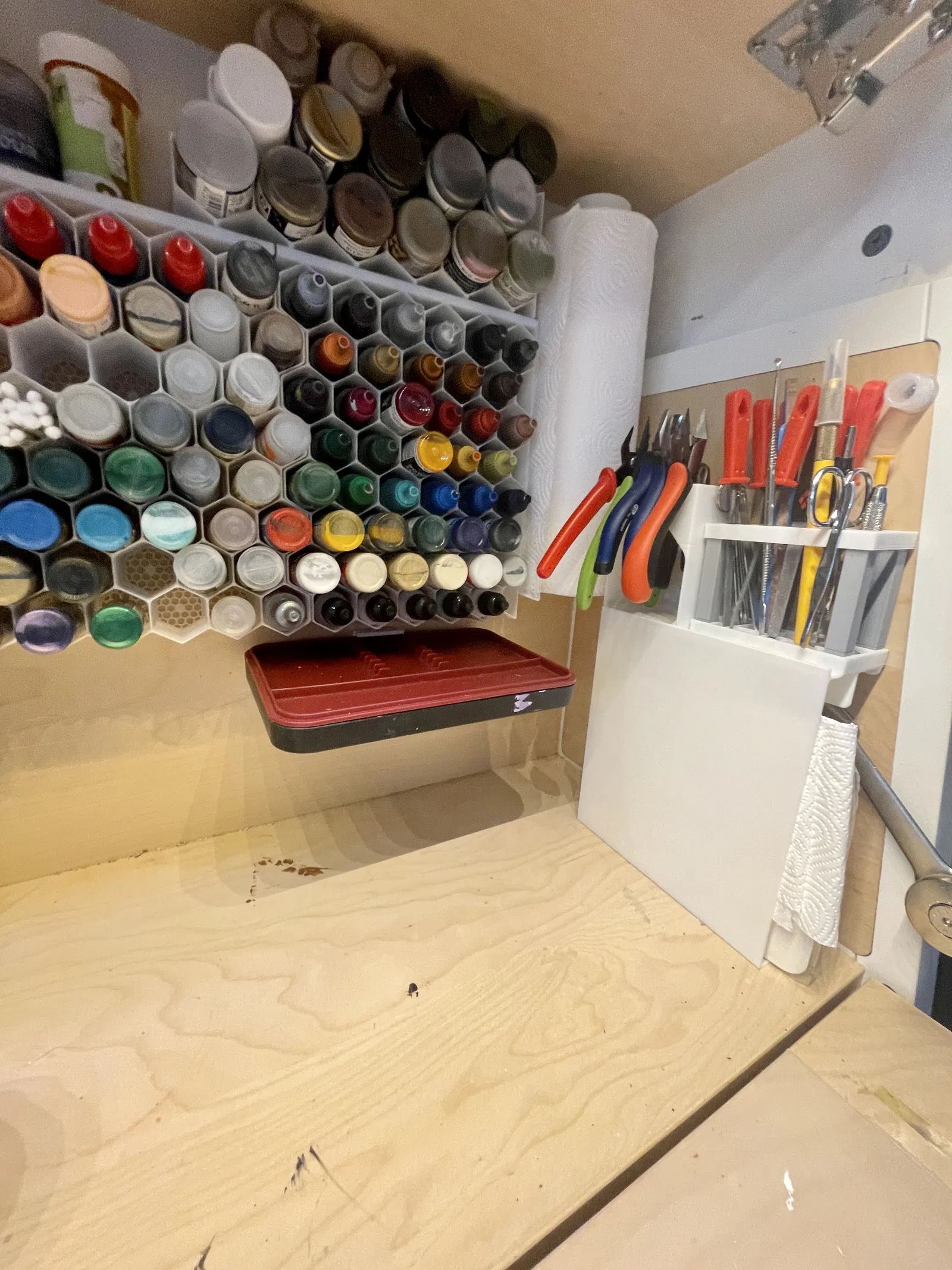 Tui có một khu vực để làm đồ thủ công rất nhỏ nên cần tận dụng không gian bàn làm việc có sẵn một cách hiệu quả. Hầu hết các vật dụng của tui đều được treo lên tường nếu có thể. Lúc trước để cái khay ướt (wet palette) ra khỏi bàn không dễ dàng… cho đến bây giờ. Tui đã làm cái giá treo tường nhỏ và đơn giản này cho cái khay ướt của Army Painter. Nó chỉ tương thích với nắp màu đỏ (cái nắp đen phụ kia đối với tui thì chỉ vướng thôi.) Giá treo này xài được với cả cạnh dài hoặc cạnh ngắn của khay. 0.4 nozzle, 0.2 layer, PETG Lưu ý thiết kế này tương thích với bộ chèn khay vân của tui /3d-model/de-locirc-trocircn-son-texture-cho-khocircng-gian-uon-uot-army-painter Cập nhật 3/2/2024: Tui đã cập nhật thiết kế để vừa khít hơn và sửa lỗi nghiêng về phía trước của thiết kế v1 cũ. Mẫu v3 giờ đây nên để khay ở góc 0 độ xung quanh. Tất cả các bộ phận in 3D được sử dụng trong dự án tổ chức bàn làm việc này: Giá treo sơn chai nhỏ giọt gắn tường của ATree | Tải mô hình STL miễn phí | Printables.com Chân đế sơn chai nhỏ giọt (35mm) của ATree | Tải mô hình STL miễn phí | Printables.com Nắp che bản lề gấp Ikea PS 2014 của ATree | Tải mô hình STL miễn phí | Printables.com Giá đỡ cọ vẽ hoặc dụng cụ - tối đa 28 cây cọ của ATree | Tải mô hình STL miễn phí | Printables.com Hộp có ngăn kéo tùy chỉnh theo tham số của Yanev | Tải mô hình STL miễn phí | Printables.com Có lẽ là tay cầm vẽ thoải mái nhất hiện có của flossi - Thingiverse Giá đỡ cọ của Ratthy - Thingiverse Chậu đựng nước pha sơn của arnaud vgr | Tải mô hình STL miễn phí | Printables.com Giá đỡ MagSafe iPhone 12 mini của dreamseed - Thingiverse Bộ ngăn kéo và hộp chia vạch rất đặc biệt của ATree | Tải mô hình STL miễn phí | Printables.com Giá đỡ kìm cho dự án bàn làm việc Ikea PS2014 của ATree | Tải mô hình STL miễn phí | Printables.com Giá treo giấy ăn - dọc - Dự án bàn làm việc Ikea PS2014 của ATree | Tải mô hình STL miễn phí | Printables.com Bản độ bàn Ikea PS2014: Thứ ký Ikea PS 2014 này có vài bí mật - IKEA Hackers