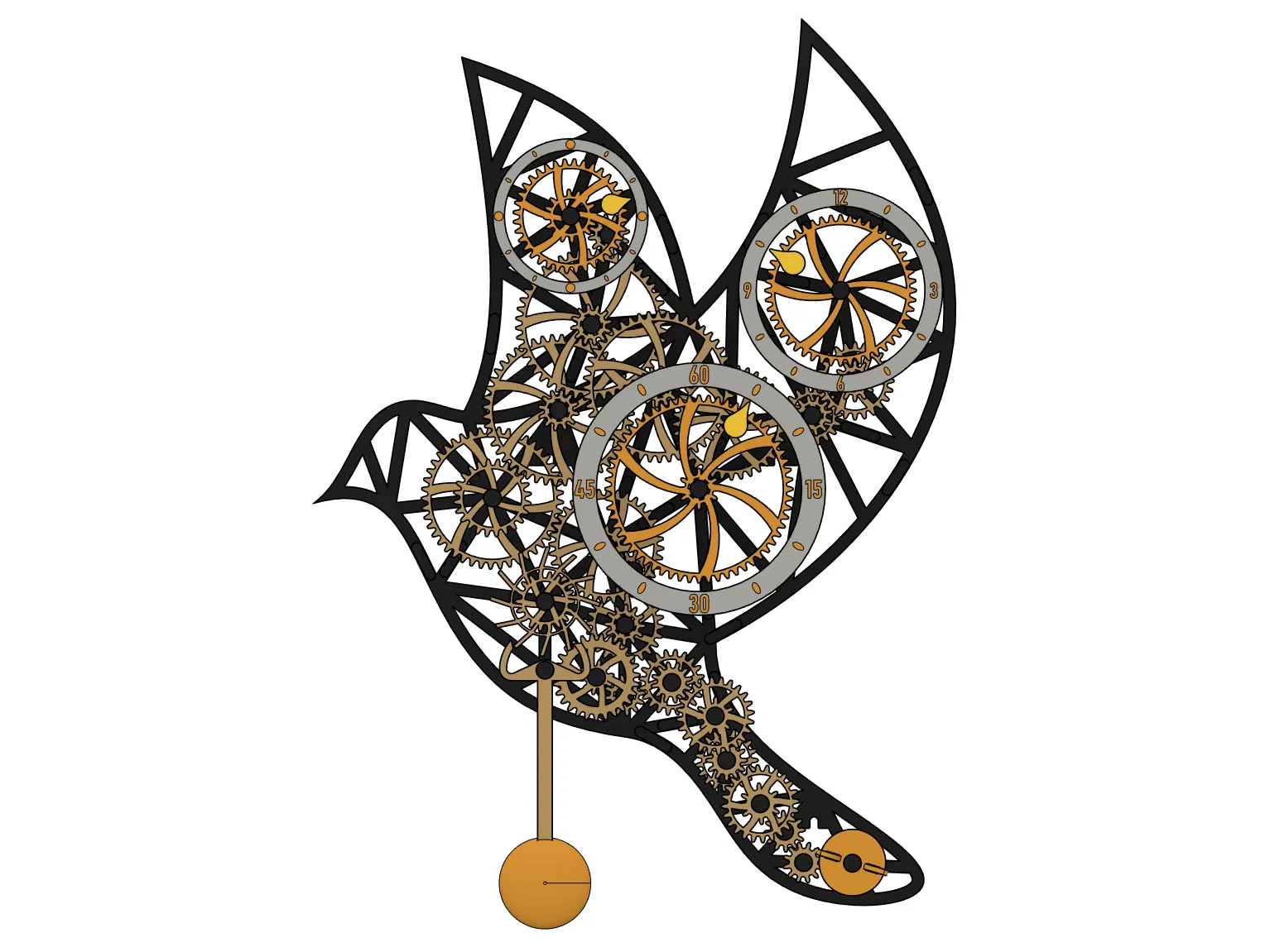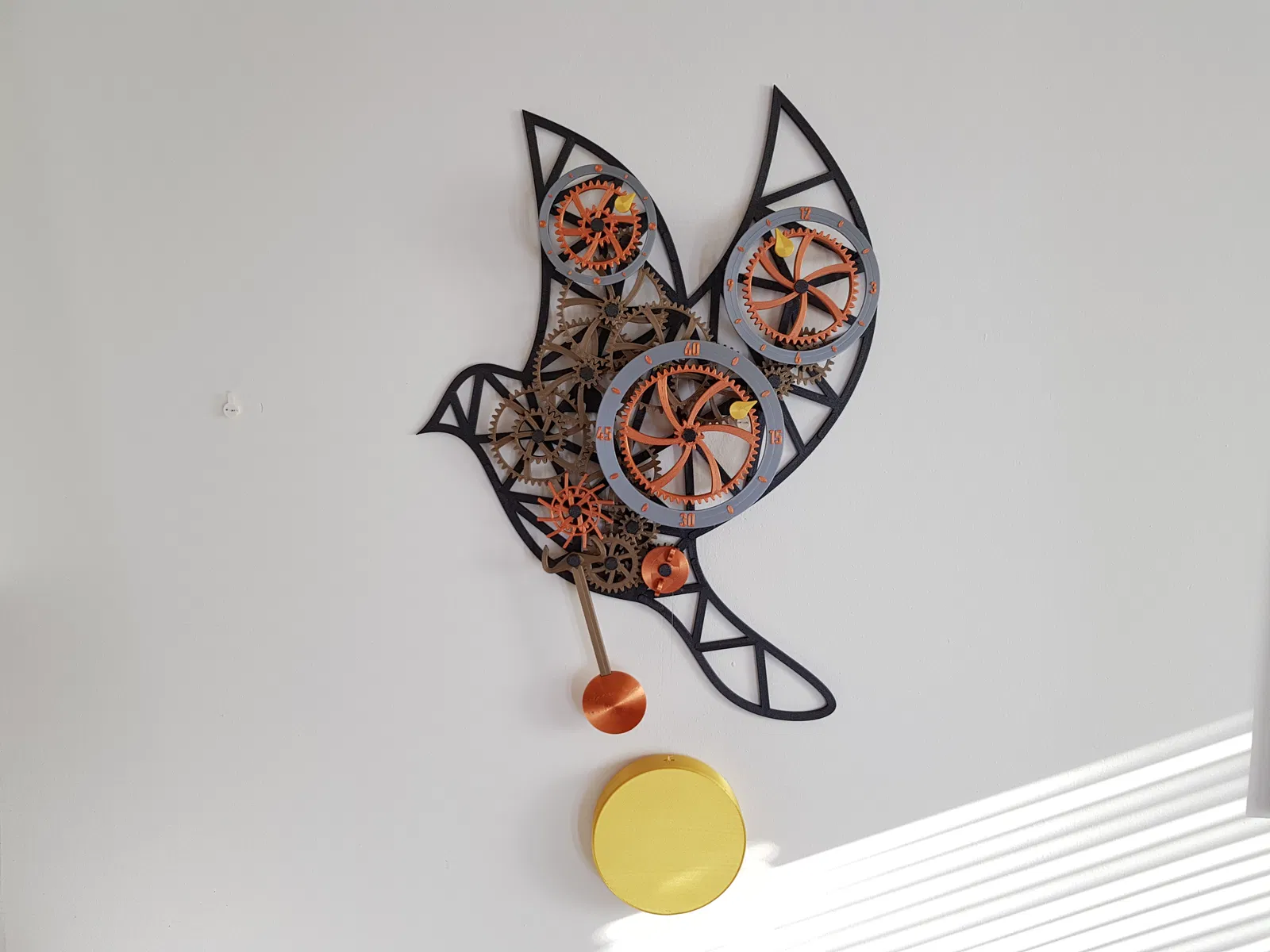 Chiếc đồng hồ treo tường cơ khí hình chim bay này là một dự án in 3D đầy thử thách nhưng bổ ích. Hoàn toàn có thể in được, nó mang đến một cái nhìn độc đáo về thời gian với cơ chế hoạt động bằng bánh răng và quả lắc. Kích thước lớn và thiết kế phức tạp làm cho nó trở thành một điểm nhấn ấn tượng cho bất kỳ không gian nào.