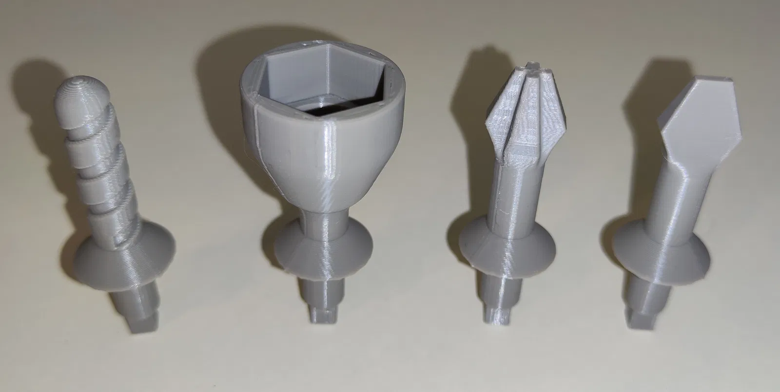 Bốn Bộ phận hoặc Mũi khoan đi kèm cho Đồ chơi Máy khoan Smoby Black Decker. Bao gồm: Lưỡi dẹt, Chữ thập (Phillips), Mũi khoan, Đầu siết đai ốc. Khuyến khích in đứng với Đế và Hỗ trợ để có kết quả tốt nhất.