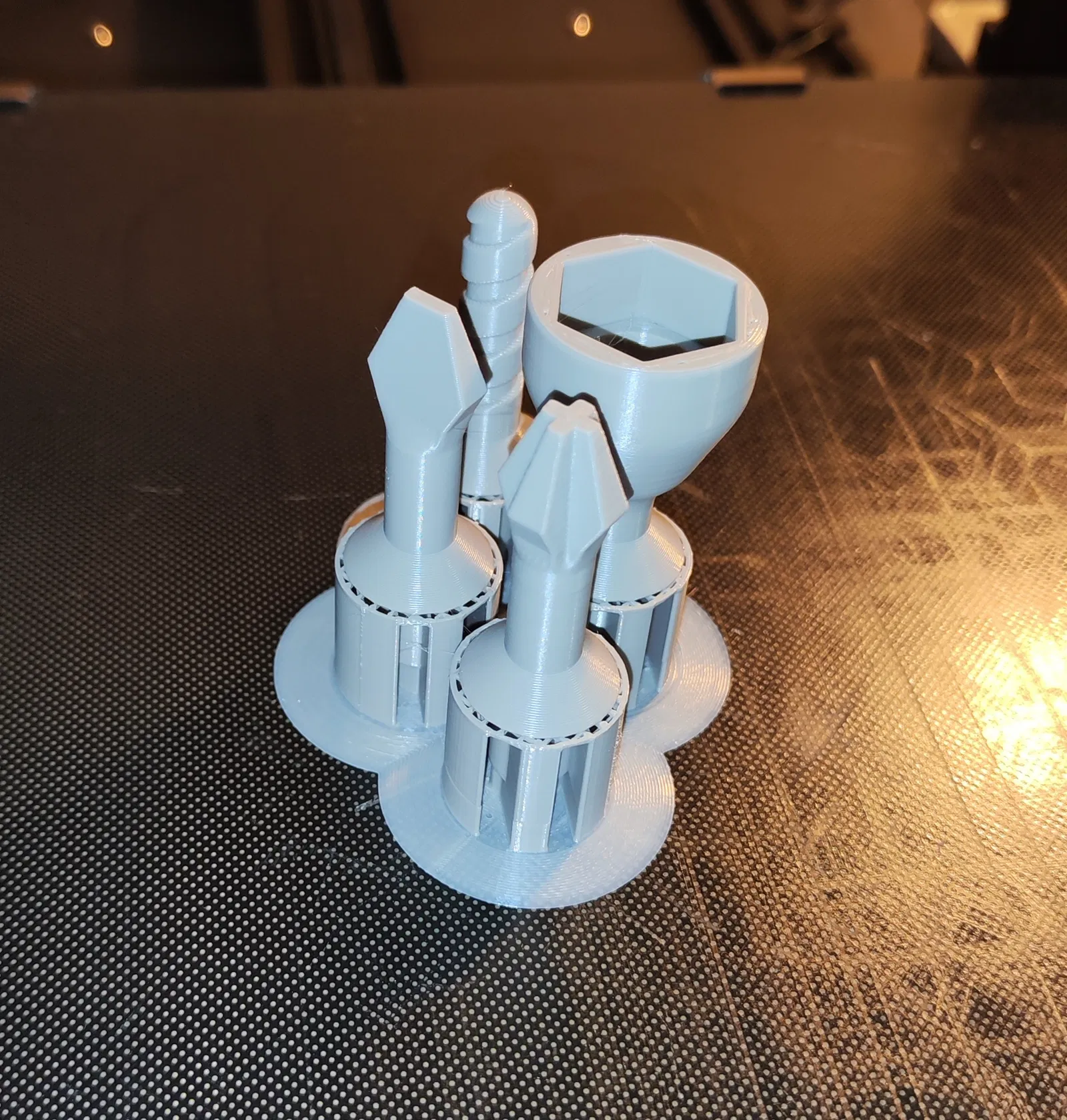 Đã in bằng sợi PLA màu xám, với độ cao lớp (layer height) 0.2mm.