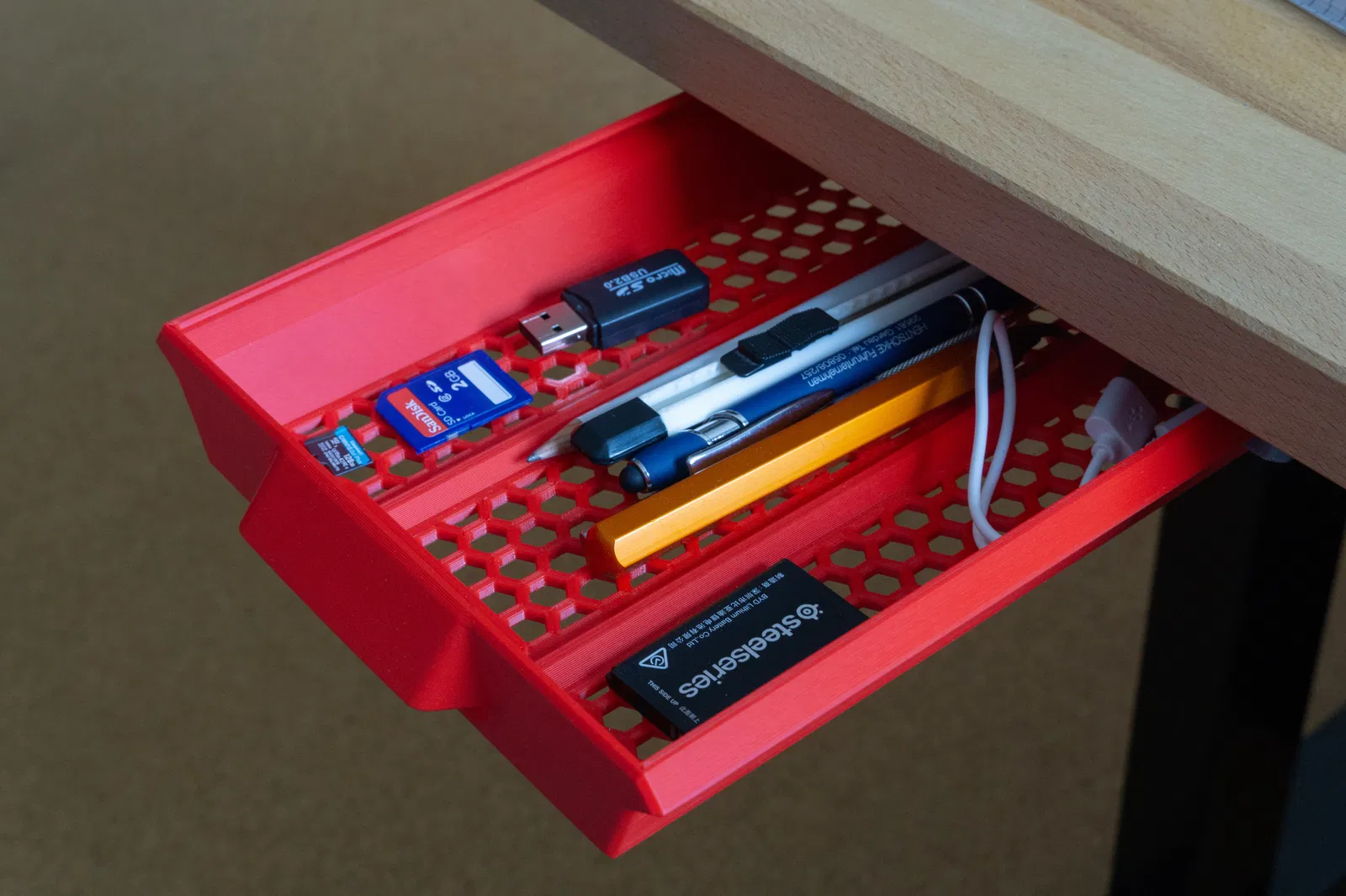 Ngăn kéo đơn giản này giúp sắp xếp đồ đạc gọn gàng, luôn trong tầm tay. Kích thước 205 x 238 x 39mm. Có thanh trượt mượt mà, dễ dàng lấy đồ. Chỉ cần 4 vít gỗ ⌀3mm để lắp đặt. Có nhiều phiên bản cập nhật với các tính năng mới.