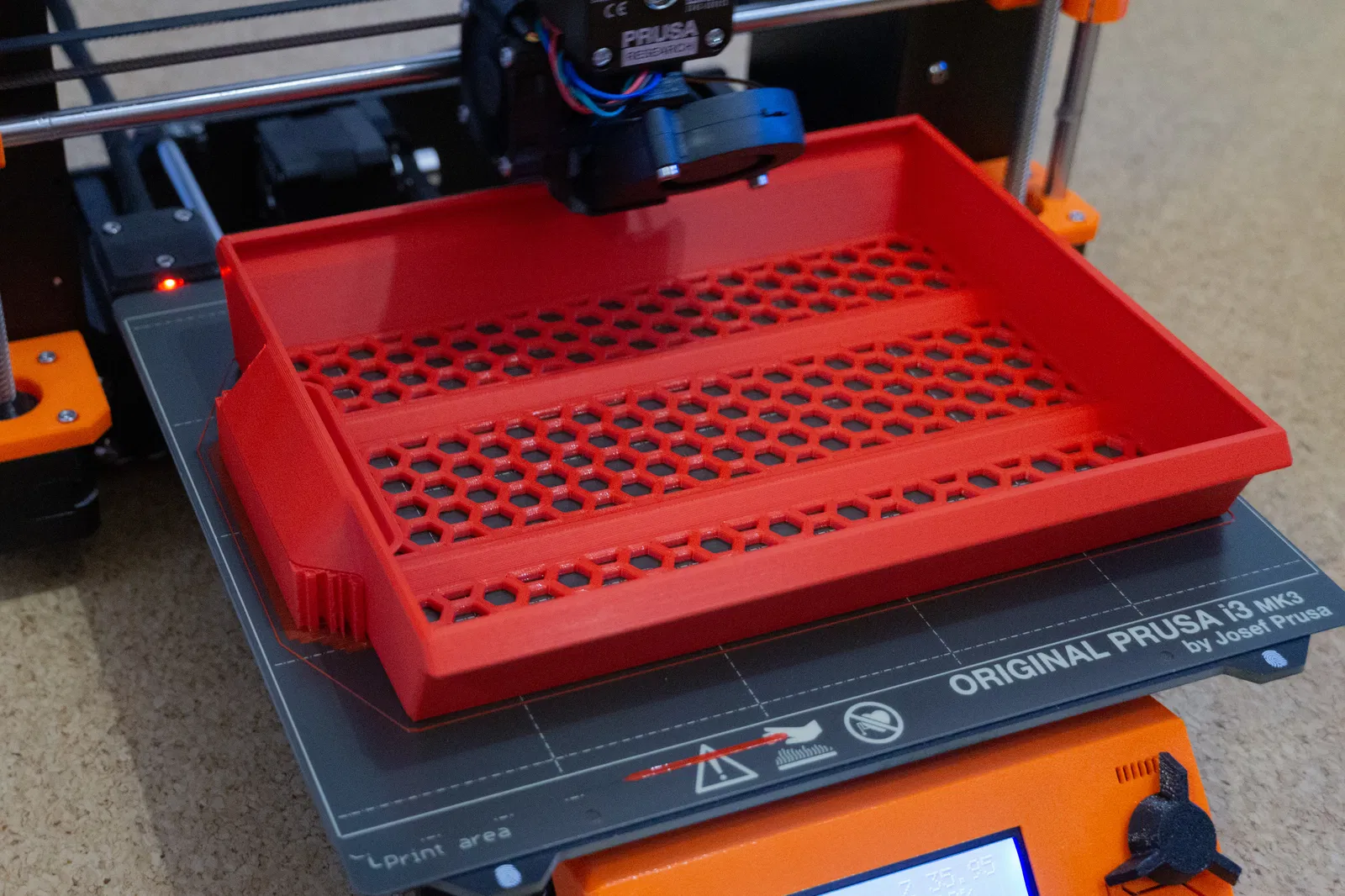 Tôi thiết kế cái ngăn kéo này để nó vừa khít với máy Prusa MK3S+ của tôi. Nếu nó không vừa với máy in của bạn thì bạn cứ việc chỉnh tỉ lệ xuống (hoặc lên) thôi.