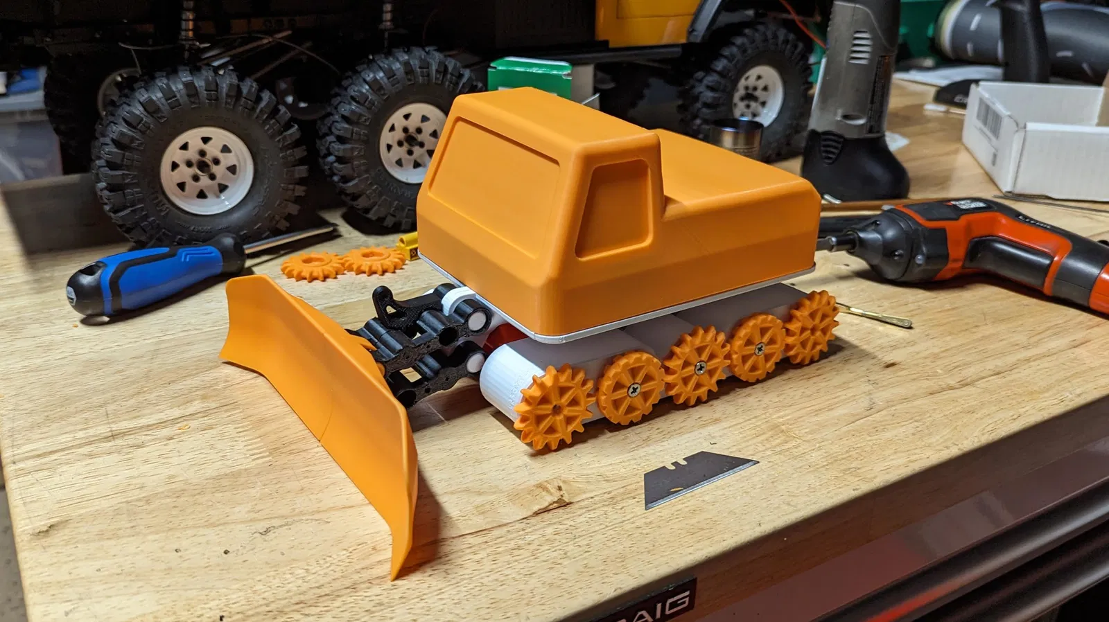 Tôi thiết kế cái thân này cho chiếc RC Snowcat 1:24 của Froy192. Nó được thiết kế để gài vào mấy cái gờ ở hai bên của khung xe nguyên bản. Bạn sẽ cần cắt một khe nhỏ cho cái khớp nối lưỡi cày sao cho phù hợp với loại khớp nối của bạn.