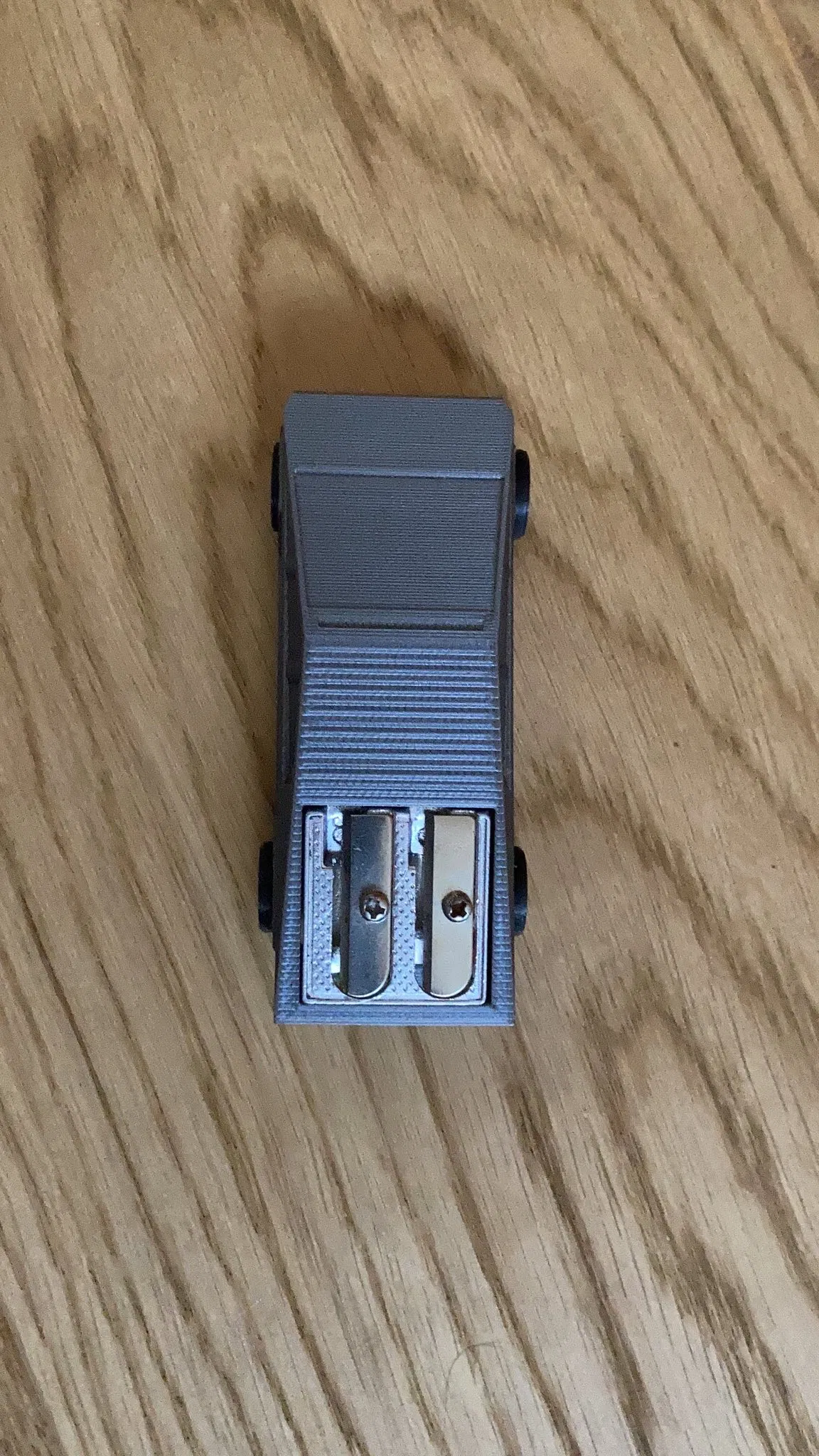 Cái gọt bút chì này đã được biến tấu thành chiếc xe tải cyber. Nó vừa vặn một cách hoàn hảo. Chúng ta sẽ in các bộ phận riêng lẻ, bao gồm cả bánh xe. Sau đó, bánh xe sẽ được gắn vào trục với đường kính 2mm, trục này nên dài hơn 22mm. Nếu lỗ trục quá nhỏ, bạn có thể dùng mũi khoan nhỏ để làm rộng nó ra. Chúc bạn in ấn vui vẻ nhé :)