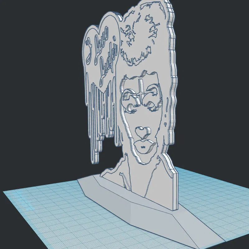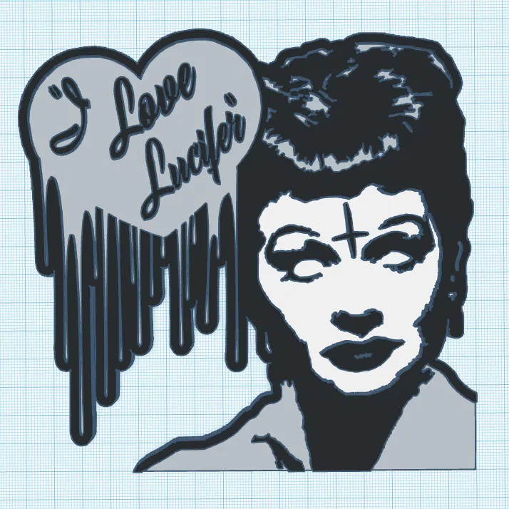 Mô hình chân đế 3D trang trí nhiều màu sắc, hoàn hảo cho kệ sách, bàn làm việc hoặc bất kỳ bề mặt nào khác. Tác phẩm nghệ thuật độc đáo lấy cảm hứng từ "I Love Lucy", có cả phiên bản màu và đen trắng. Hãy thưởng thức và "Hail Satan"!