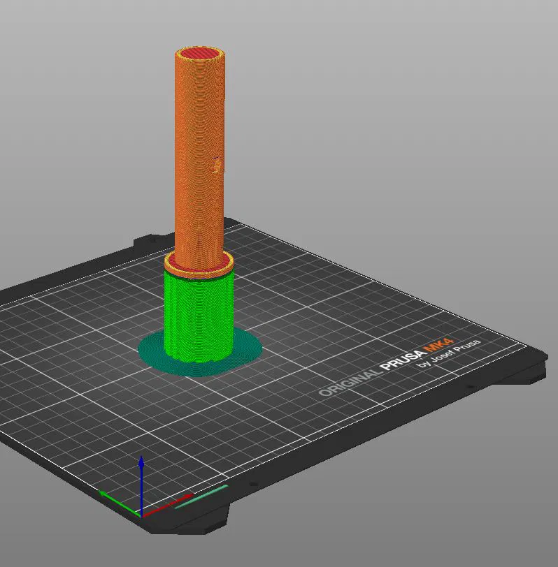 In trên máy Prusa MK4 với: Vật liệu: PETG, không rõ hãng Chiều cao lớp: 0,22 mm Lớp vỏ: 5 cho adapter Original Prusa Spool Holder Lớp vỏ: 7 cho adapter Elegoo Neptune 2/3/4 spool holder Hỗ trợ: có Brim: chỉ brim ngoài, 20 mm Infill: gyroid ở 15% Đầu phun: 0,4mm Hướng in: như trong hình 4 & 5 Thời gian in: ~1h40 & 2h10 với profile Input Shaper 0,4 tiêu chuẩn của MK4 đối với mình