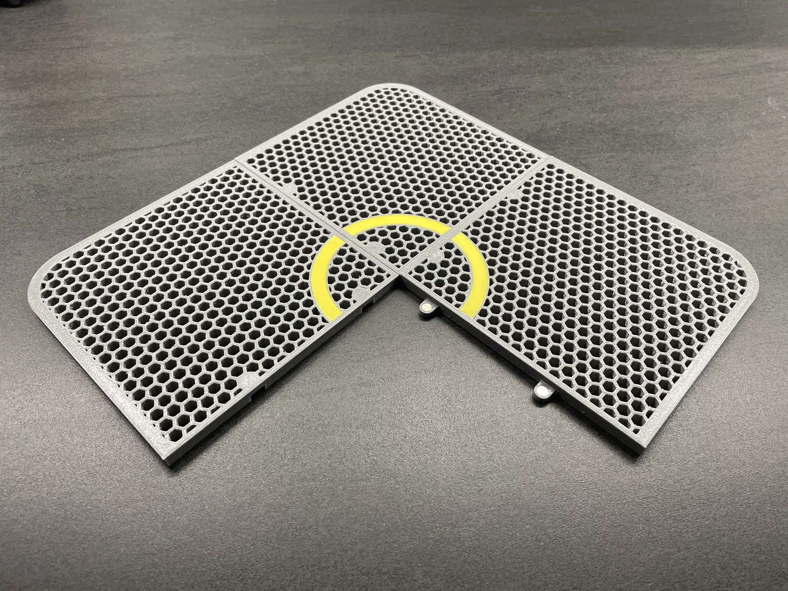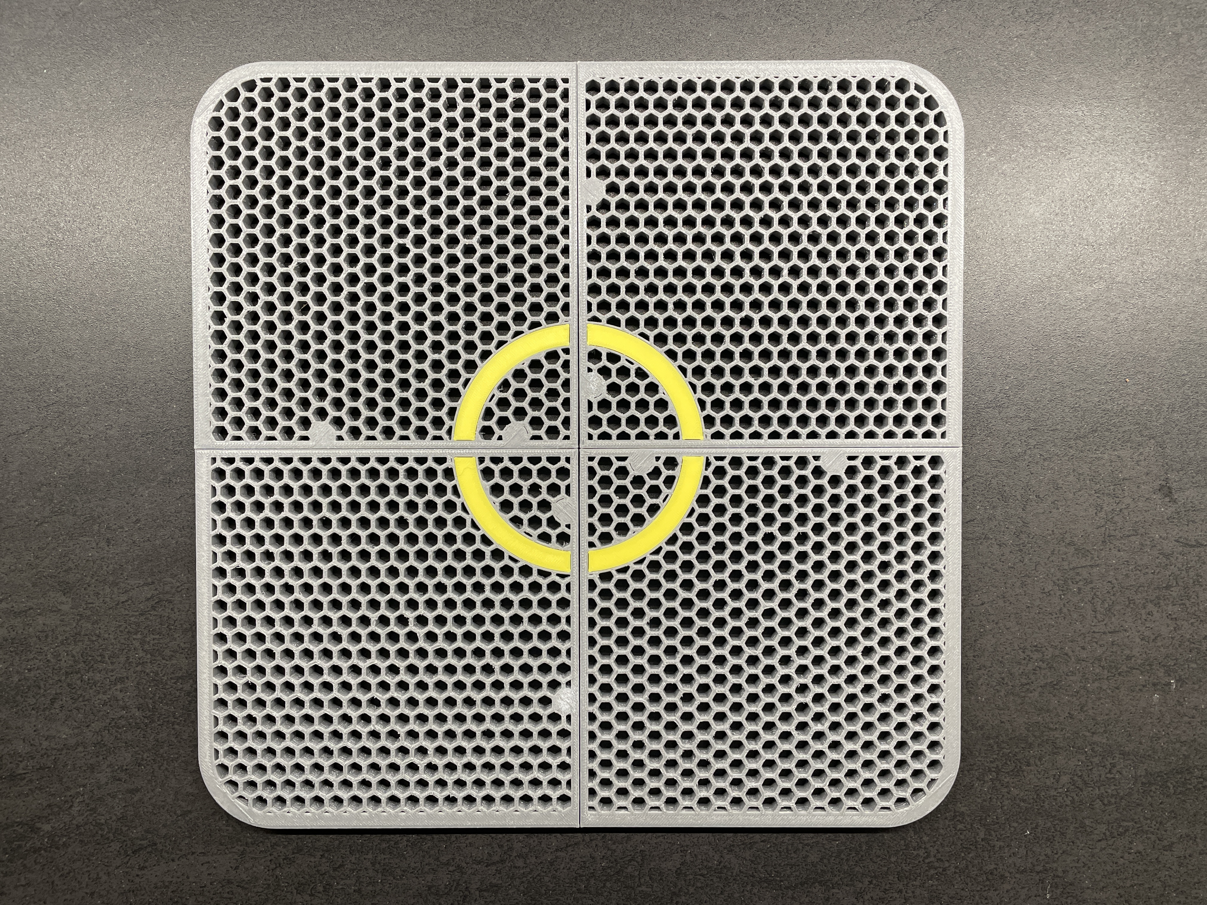 The landing pad gồm bốn bộ phận giống hệt nhau, được kết nối với nhau bằng các khớp khóa cùng với nam châm neodymium cỡ 6 x 3 mm.