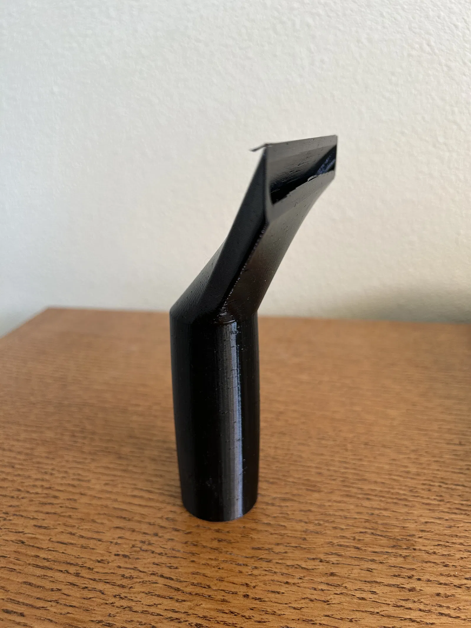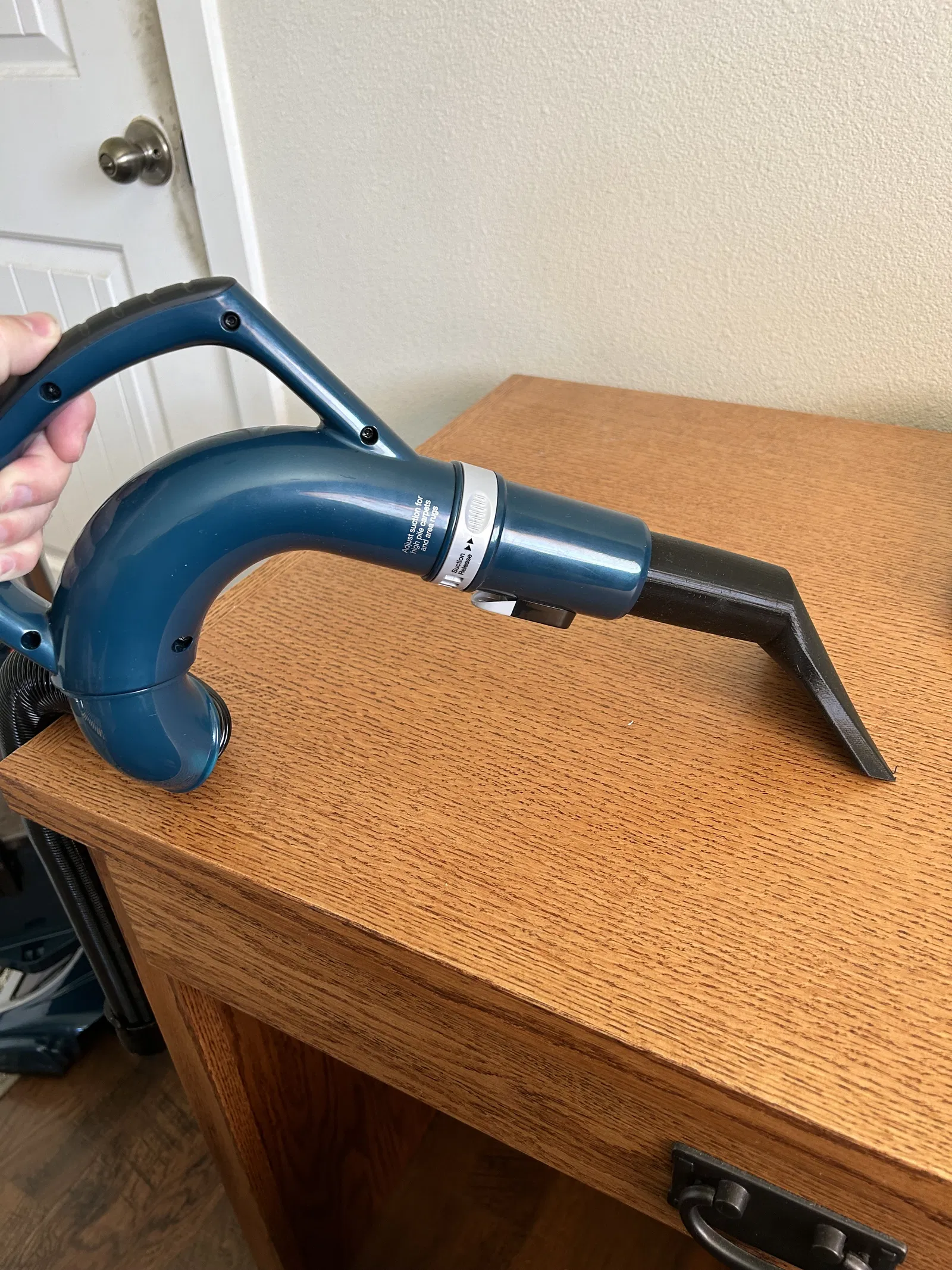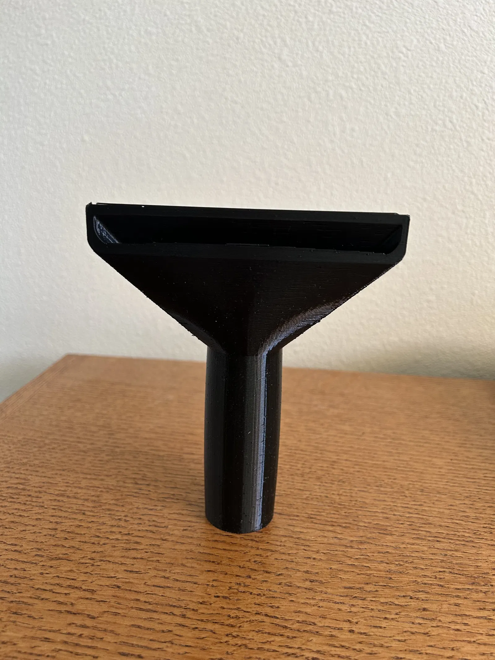 Tôi in bằng PETG ở chế độ Draft (lớp dày 0.3mm) và dùng organic supports. Do đó, nó vừa khít vào tay cầm của máy hút bụi Shark (bạn có thể cần giữ nó khi hút vì lực hút có thể đủ mạnh để giữ nó trên vải trong khi bạn kéo tay cầm ra), và đường kính bên trong sẽ cho phép bạn đặt đầu hút vào bệ đỡ phụ kiện ở bên hông máy hút bụi.