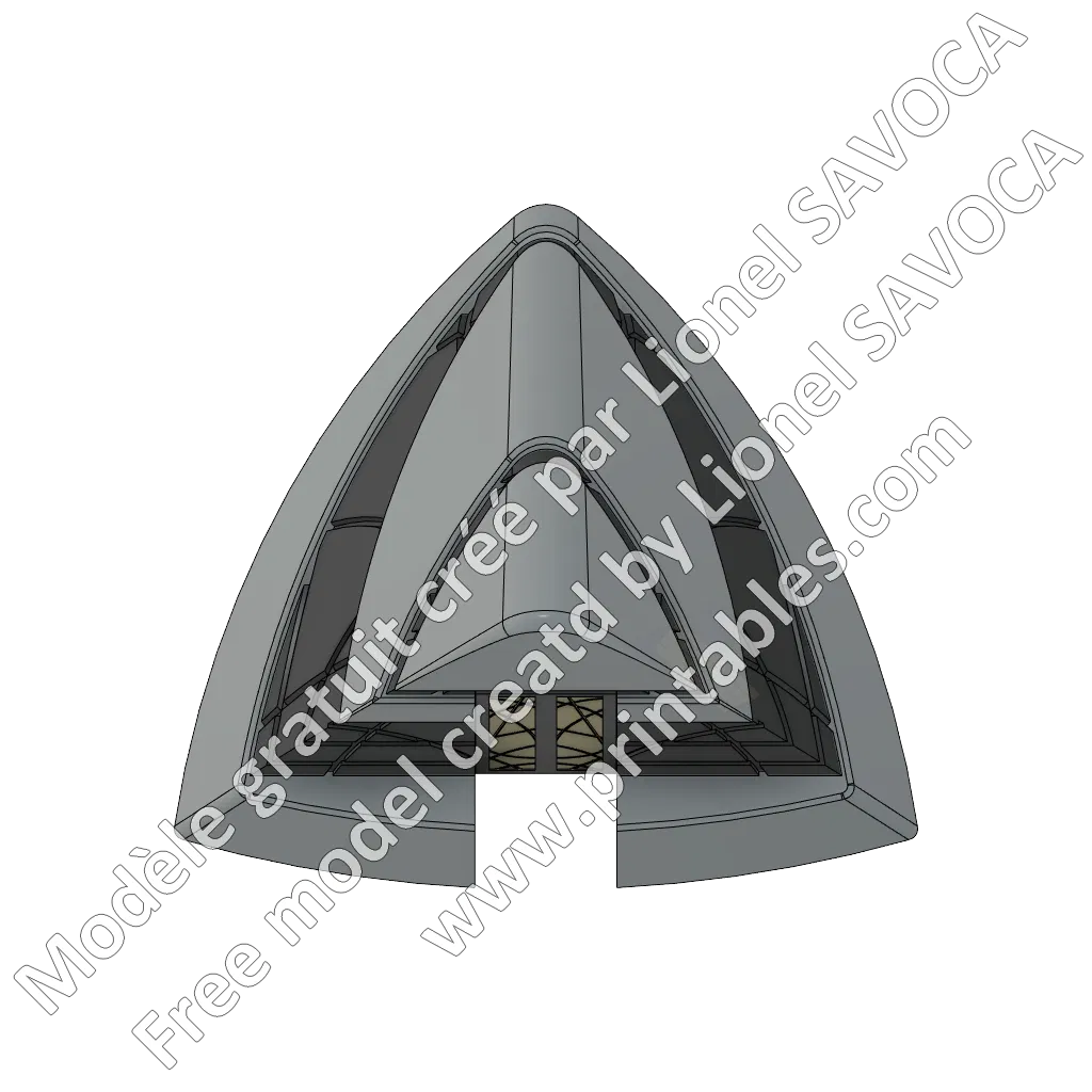 Đây là phiên bản tự làm của mình về con tàu Osiris cá nhân, từ bộ phim Stargate SG-1, tập 4x13. Mô hình được thiết kế theo tỉ lệ 1:75 (kích thước ước tính của con tàu) và có chiều cao khoảng 67cm, nhưng cũng được thiết kế để dễ dàng thu nhỏ lại 75% kích thước mà không gặp vấn đề gì (tỉ lệ 1:100 - cao 23cm). Có thể in trên máy in tiêu chuẩn hoặc máy in có MMU.