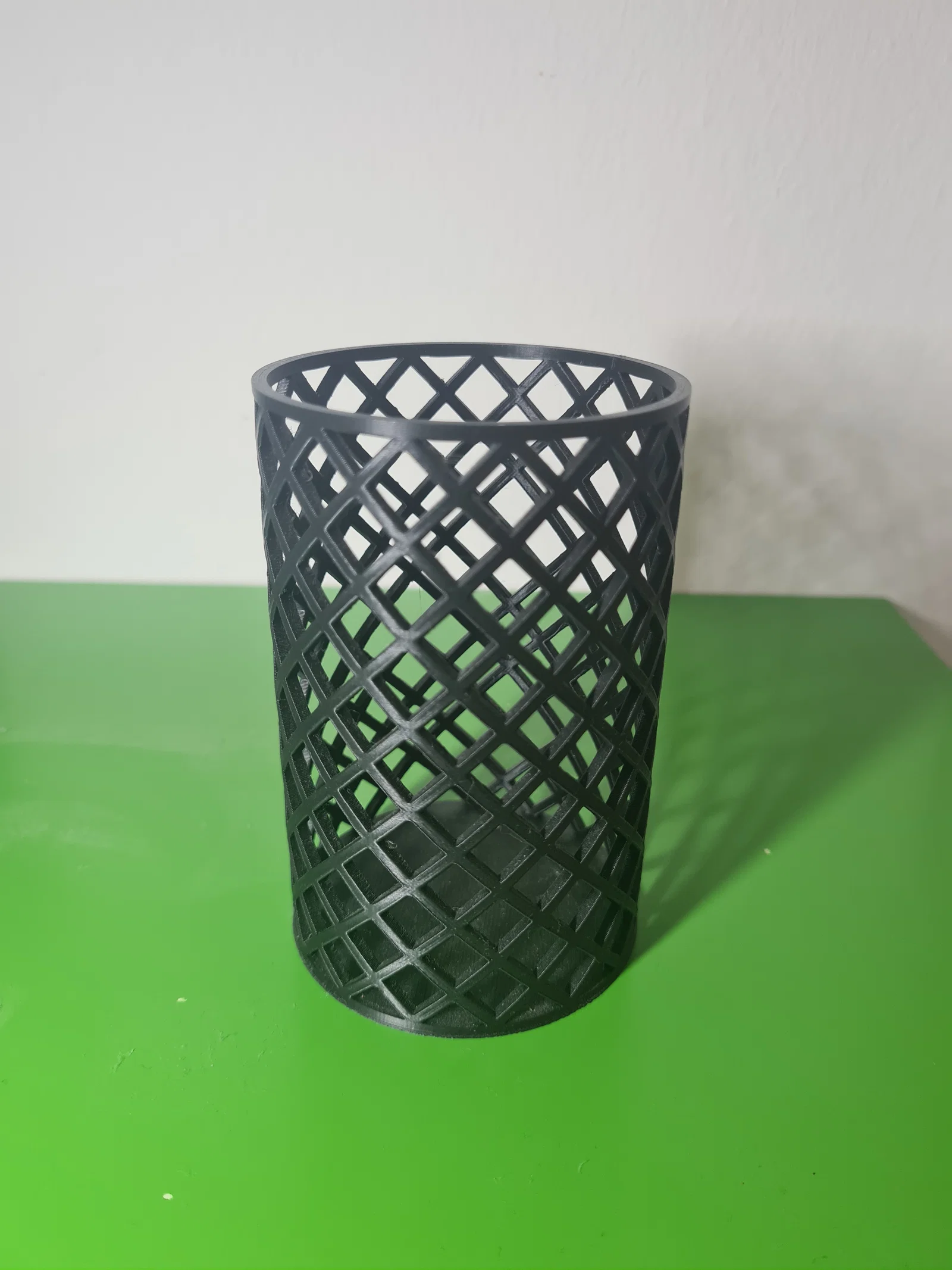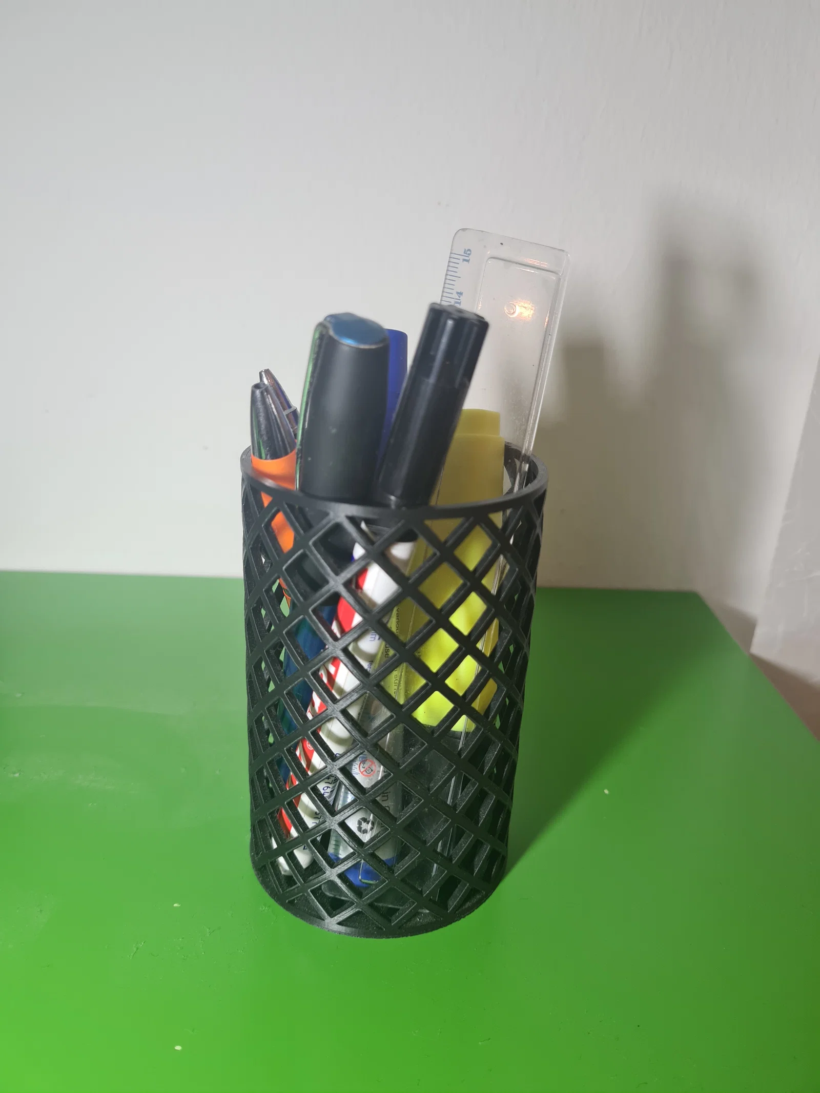 Hộp cắm bút với họa tiết tổ ong / đa giác độc đáo. Một món đồ trang trí thiết thực cho bàn làm việc, giúp bạn sắp xếp bút, viết, kéo và các vật dụng nhỏ khác một cách gọn gàng. In bằng PLA với kích thước 7x10cm.