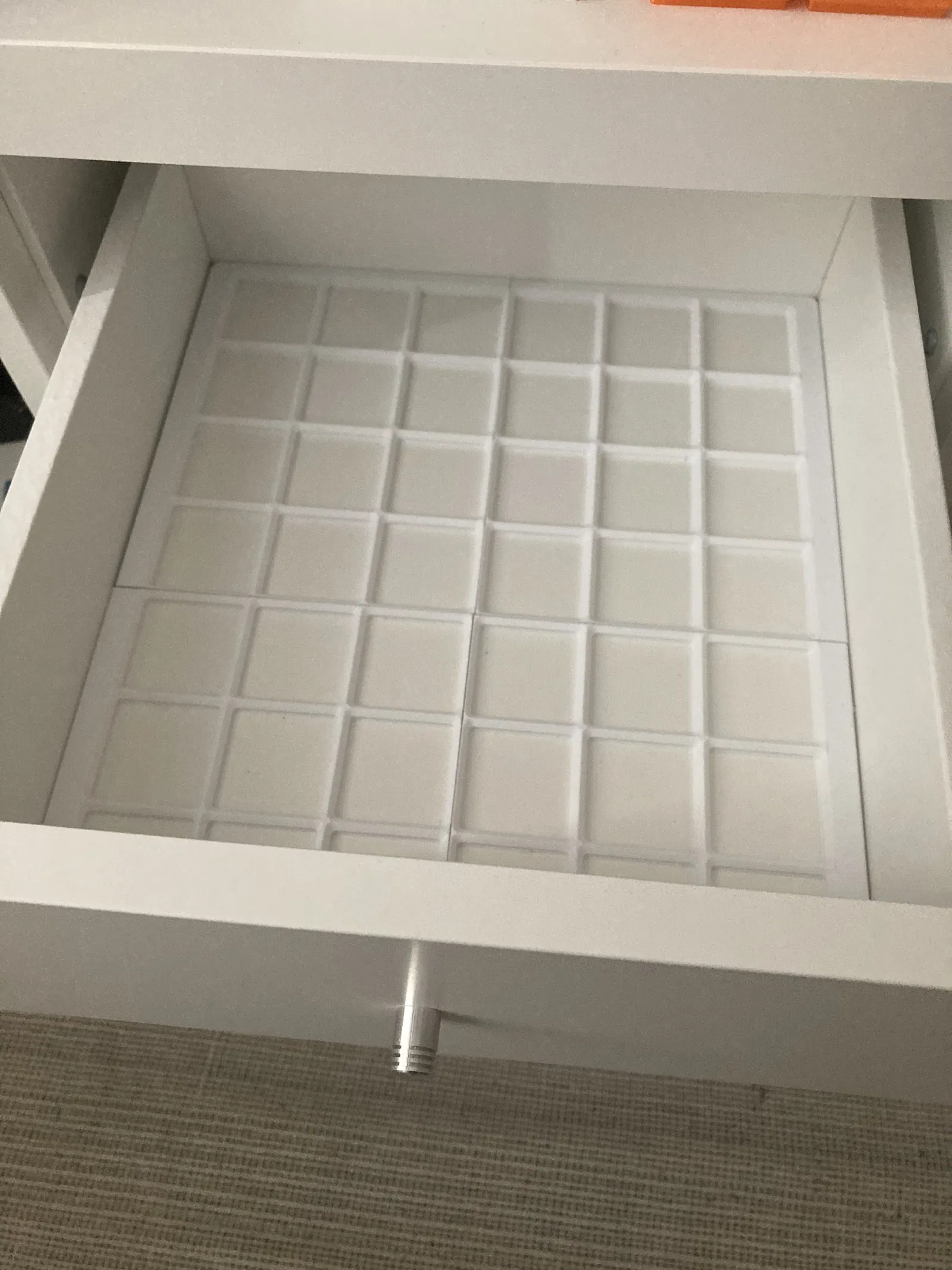 Một "gridfinity grid" được tùy chỉnh kích thước cho ngăn kéo Kallax. Thiết kế này giúp bạn sắp xếp đồ đạc gọn gàng bên trong các ngăn kéo IKEA Kallax, tận dụng tối đa không gian lưu trữ.