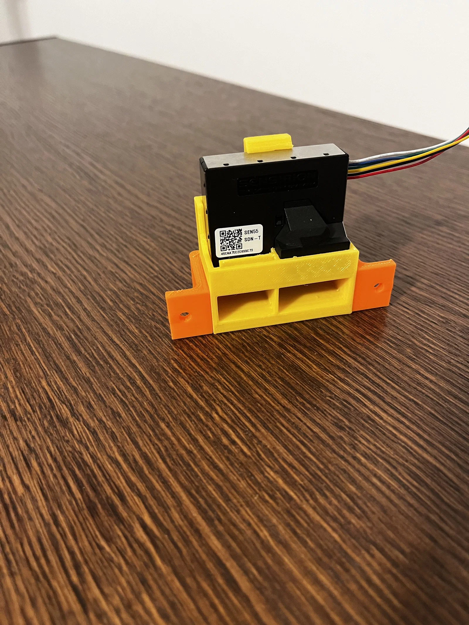 Giá đỡ cảm biến môi trường SEN55, SEN54, SEN53. Mẫu in này yêu cầu sử dụng vật liệu hỗ trợ khi in. Lý tưởng cho việc theo dõi chất lượng không khí trong nhà và các ứng dụng môi trường khác.
