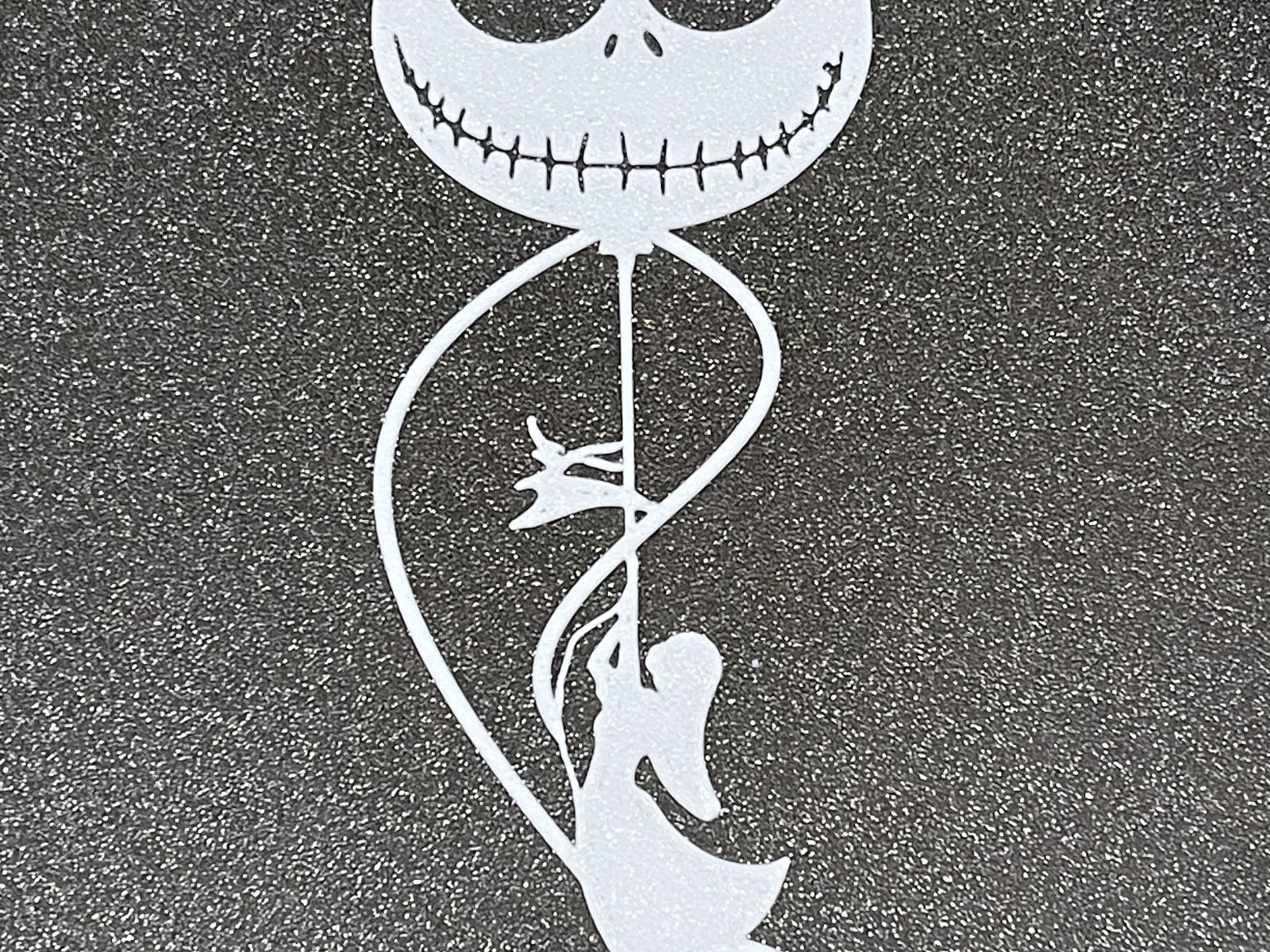 Một dấu trang in nhanh với hình ảnh Jack Skellington, Sally và Zero trong phim Nightmare Before Christmas!