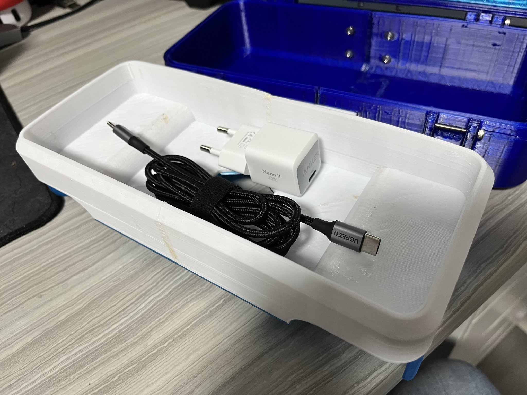 Für phần chèn ở dưới cùng của hộp, bạn trước tiên in hai lần phần chèn đó (từ hai phần này sẽ được lắp ghép thành phần chính của chèn). Để tăng cường độ bền, bạn in hai mảnh kết nối, mà sau này sẽ được dán vào bên trong của chèn. Bạn cũng cần hai phần bảo vệ bên (Sidebumper) và phần trên TPU. Tốt nhất là in ba phần này bằng TPU để đảm bảo bảo vệ tối ưu và không làm hỏng thiết bị.