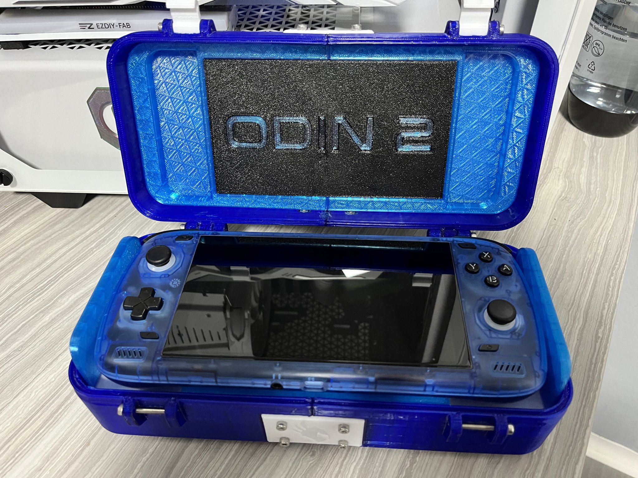 I’ve adjusted the model from Whity to fit the ayn Odin 2/Pro/Max. Since the Odin is relatively large, I designed the model to be printable on smaller printers like the Ender 3. The box provides substantial protection around the Odin, incorporating inserts to secure it and additional space for accessories such as charging cables and adapters. Parts in direct contact with the Odin can be 3D printed in TPU to avoid scratches and serve as a buffer in case of a fall. The box can be printed with either the new or old Odin logo on the lid (all files are uploaded here).