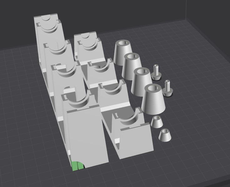 - In các bộ phận như trong hình bằng nhựa chịu nhiệt như ABS hoặc ASA. Không cần hỗ trợ.