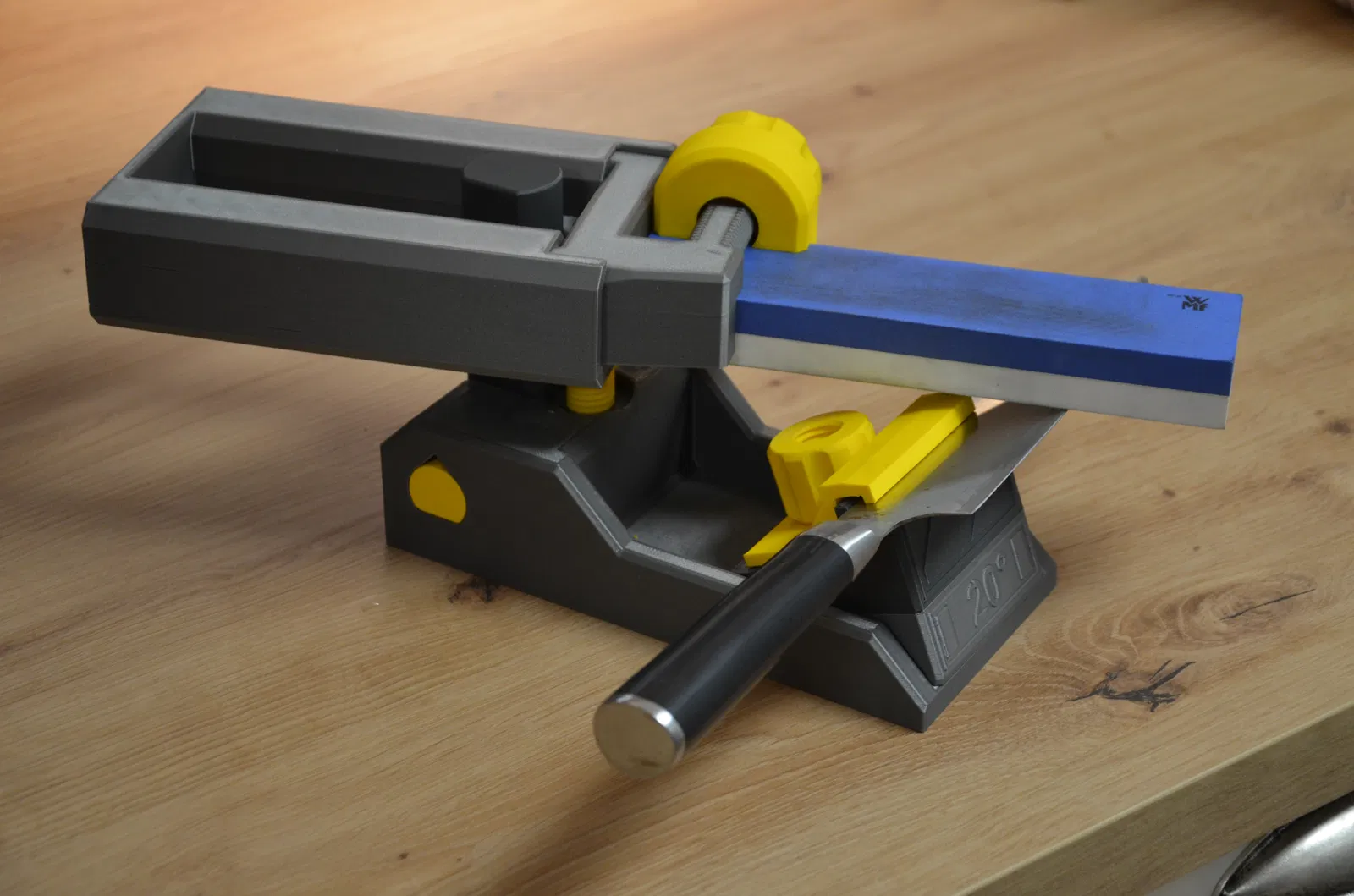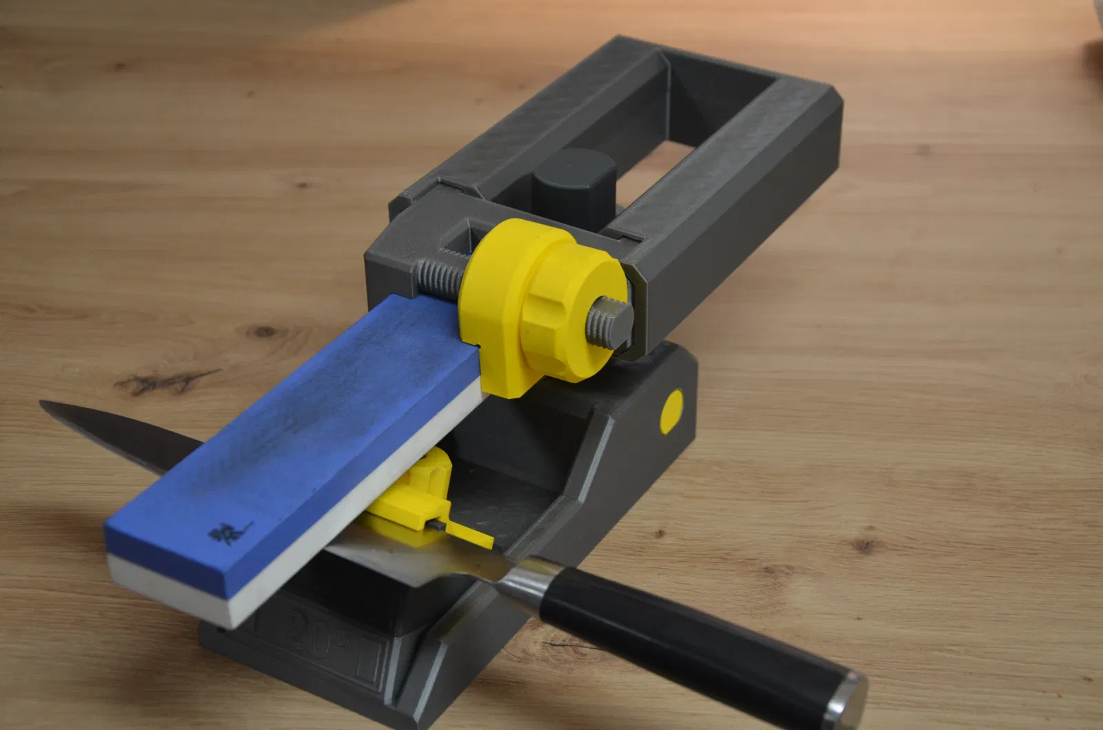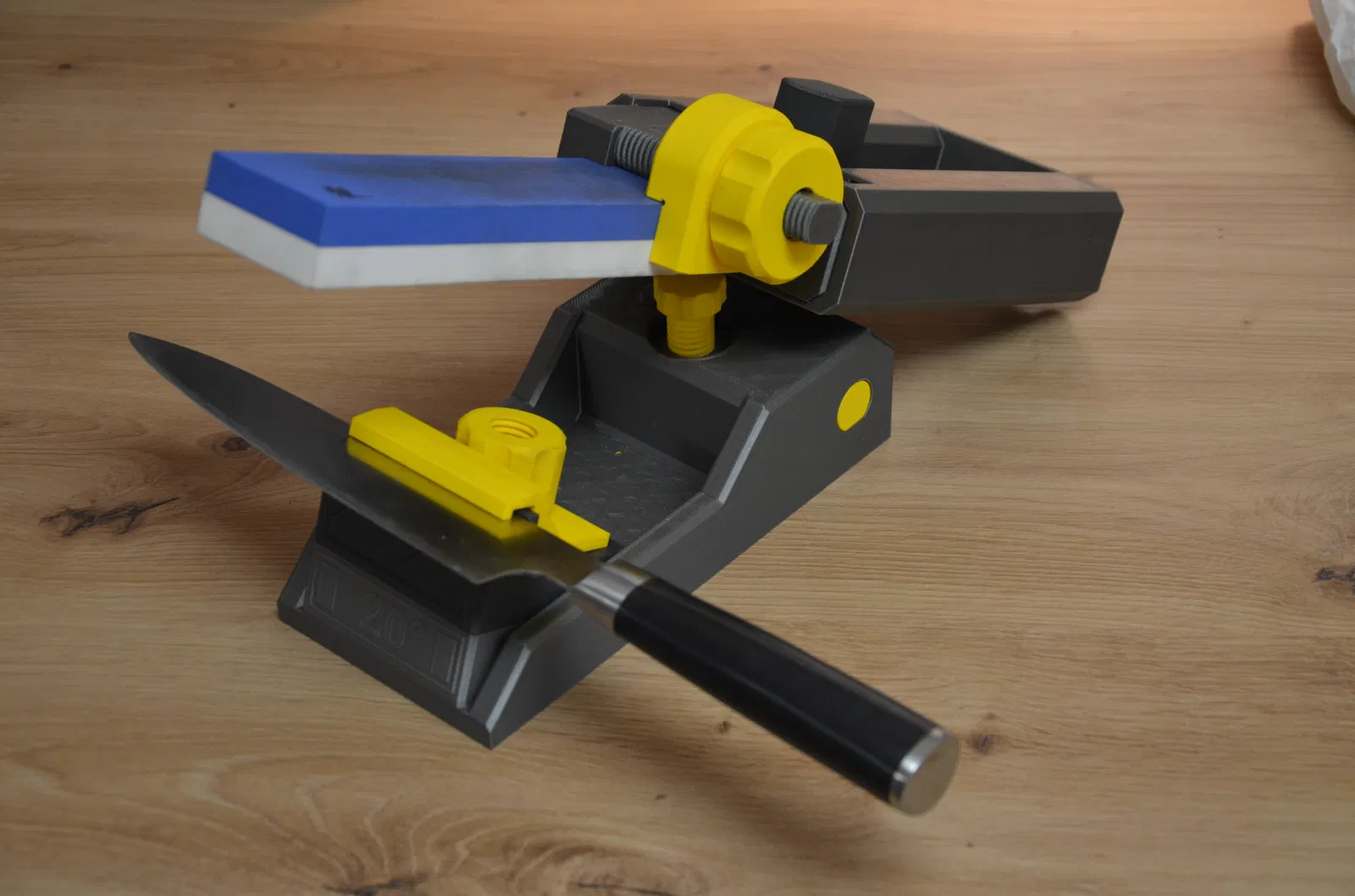 Dụng cụ mài dao 3D hoàn chỉnh, không cần phụ kiện. Dễ dàng kẹp dao và đá mài, cho phép bạn mài sắc lưỡi dao tại nhà. Khuyến khích in bằng PLA với dung sai được thiết kế sẵn. Tùy chỉnh với các bộ phận có dung sai lớn hơn nếu cần thiết.