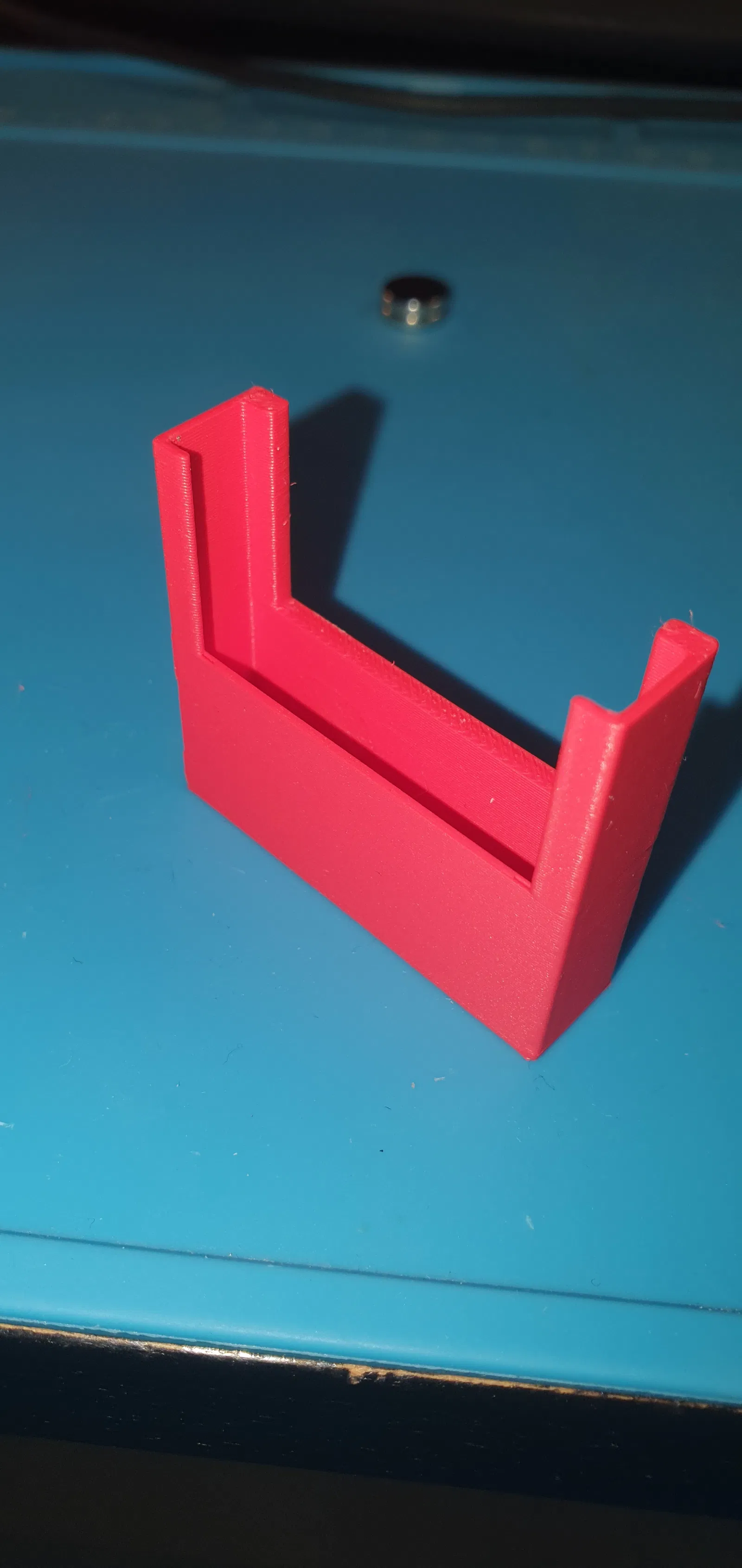 Cái đế giữ remote IR đa năng này, vừa cho remote rộng tới 42mm và dày 8mm. Dùng nam châm 10x2 để gắn. Bản cao hơn có thêm khe nam châm để tiện bấm nút. In ấn không cần support, có thể thêm brim nếu cần.