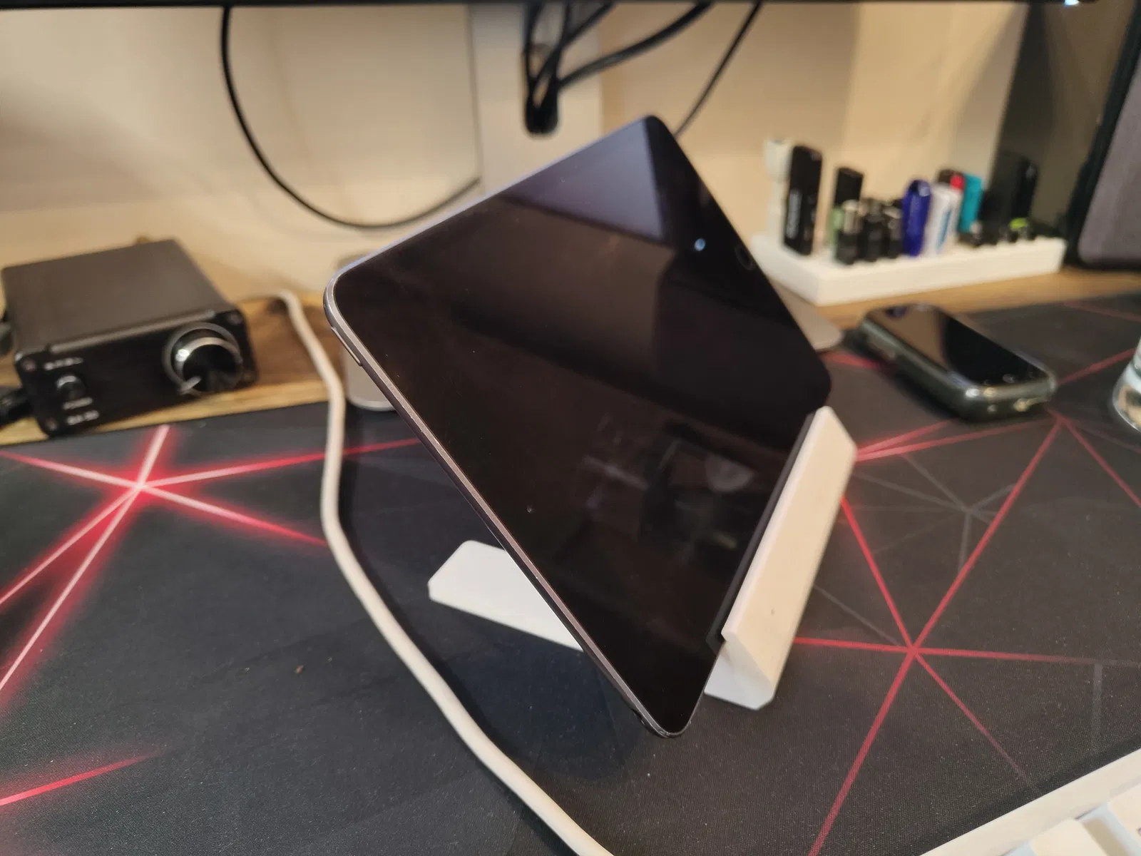 Giá đỡ cho cả máy tính bảng nhỏ và lớn. Điểm khác biệt duy nhất giữa hai mẫu là phần rãnh khoét, nơi đặt máy tính bảng vừa vặn. Sản phẩm in bằng PLA, không cần support.