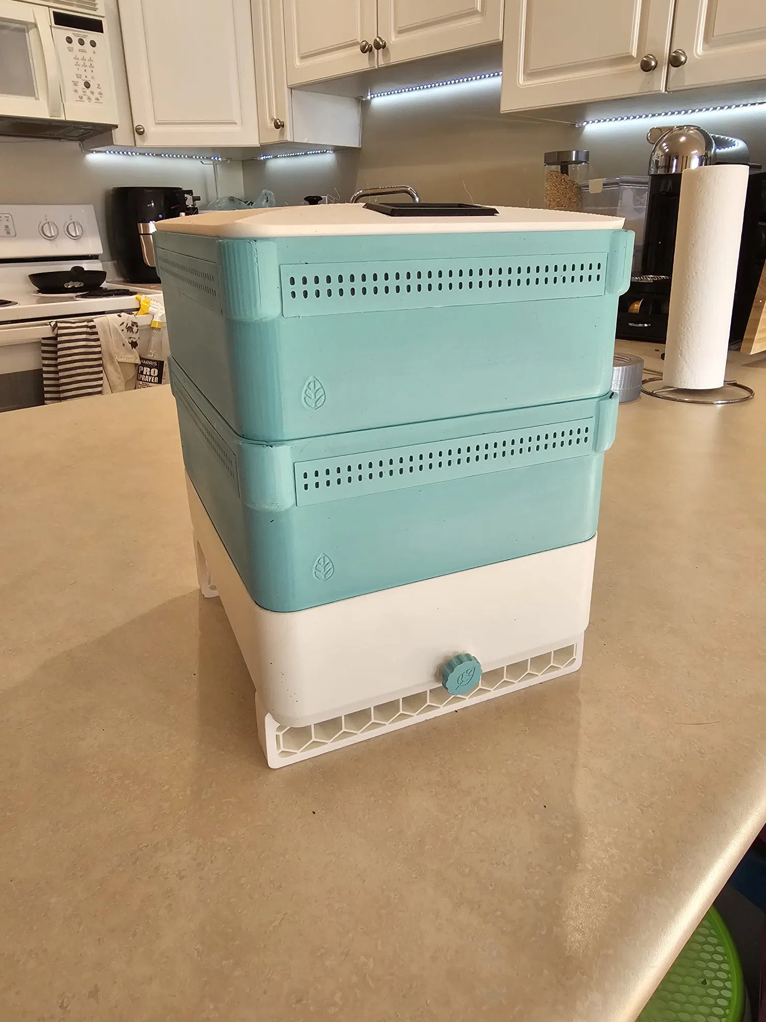 Tao ghét con bọ giẻ giẻ. Tao đang bị bọ giẻ giẻ hoành hành trong thùng ủ giun lớn của tao nên tao quyết định chỉnh sửa lại cái mẫu gốc tuyệt vời này để biến nó thành một pháo đài cho giun. Mẫu này có các sửa đổi để thêm và giấu lưới cũng như bẫy bọ giẻ giẻ.