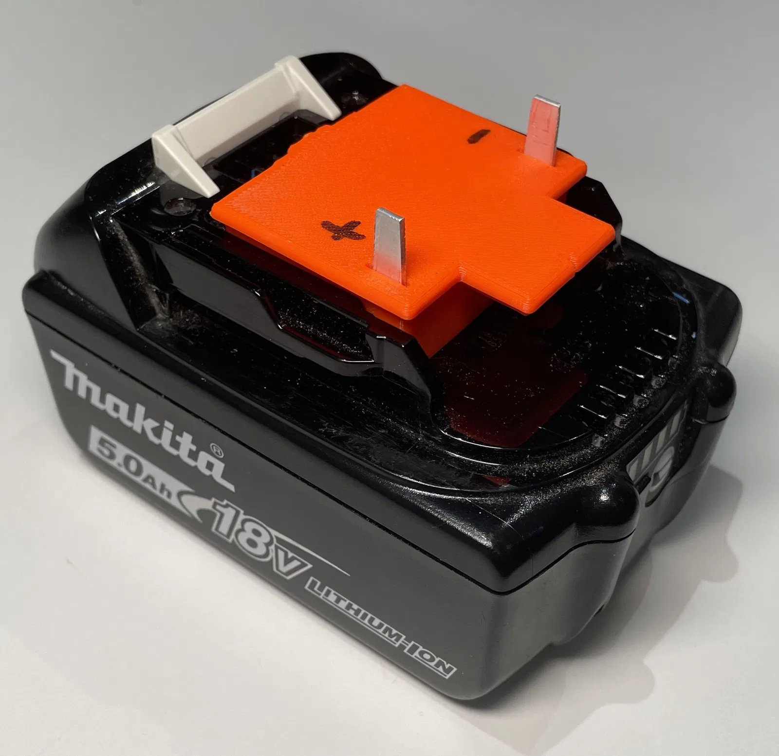 Đầu nối pin cho pin Makita 18V, dễ dàng tạo phần tiếp xúc kim loại. Được thiết kế lại từ mẫu cũ để đơn giản hóa việc chế tạo. Phù hợp cho các dự án sạc USB đôi.