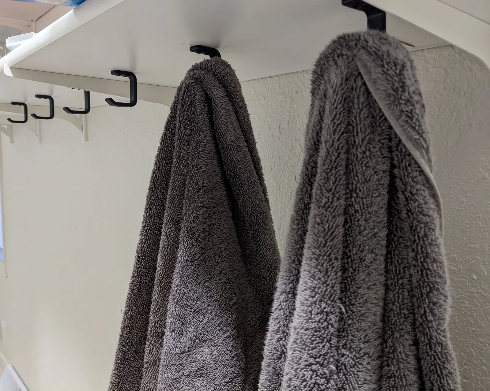 Móc treo dưới kệ, được cố định bằng 2 vít đầu tròn. Bản in này được làm từ PETG với 4 lớp vỏ ngoài và độ dày 1mm cho lớp trên và dưới. Bạn có thể tùy chỉnh thiết kế trên OnShape theo nhu cầu.