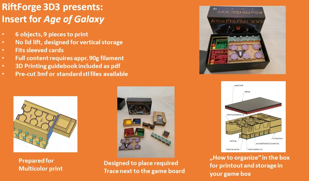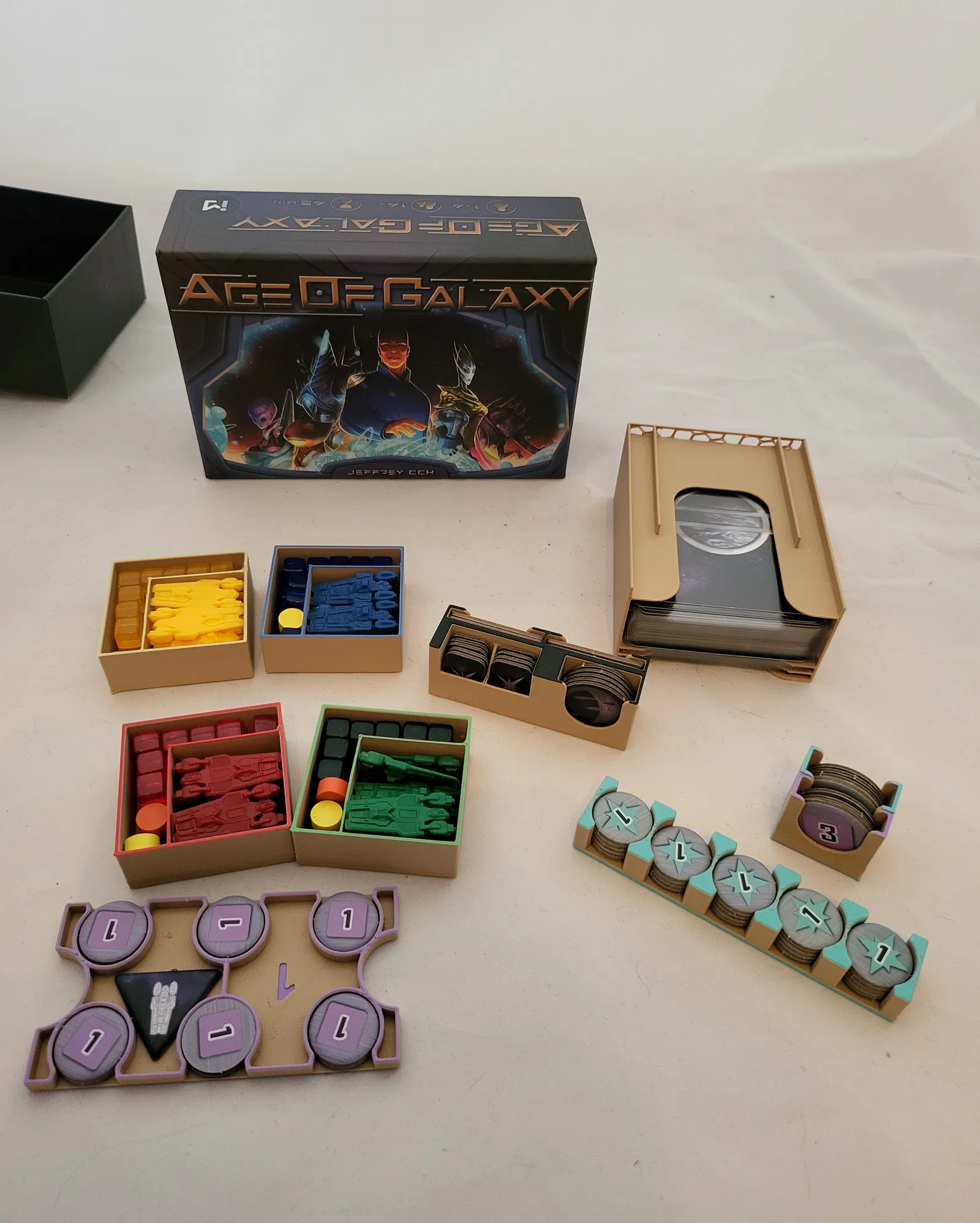 Insert tối ưu cho boardgame 'Age of Galaxy', không hở nắp, lưu trữ dọc, vừa thẻ bọc, lắp đặt nhanh. Hỗ trợ bán in, nhận đóng góp và phản hồi để cải thiện.