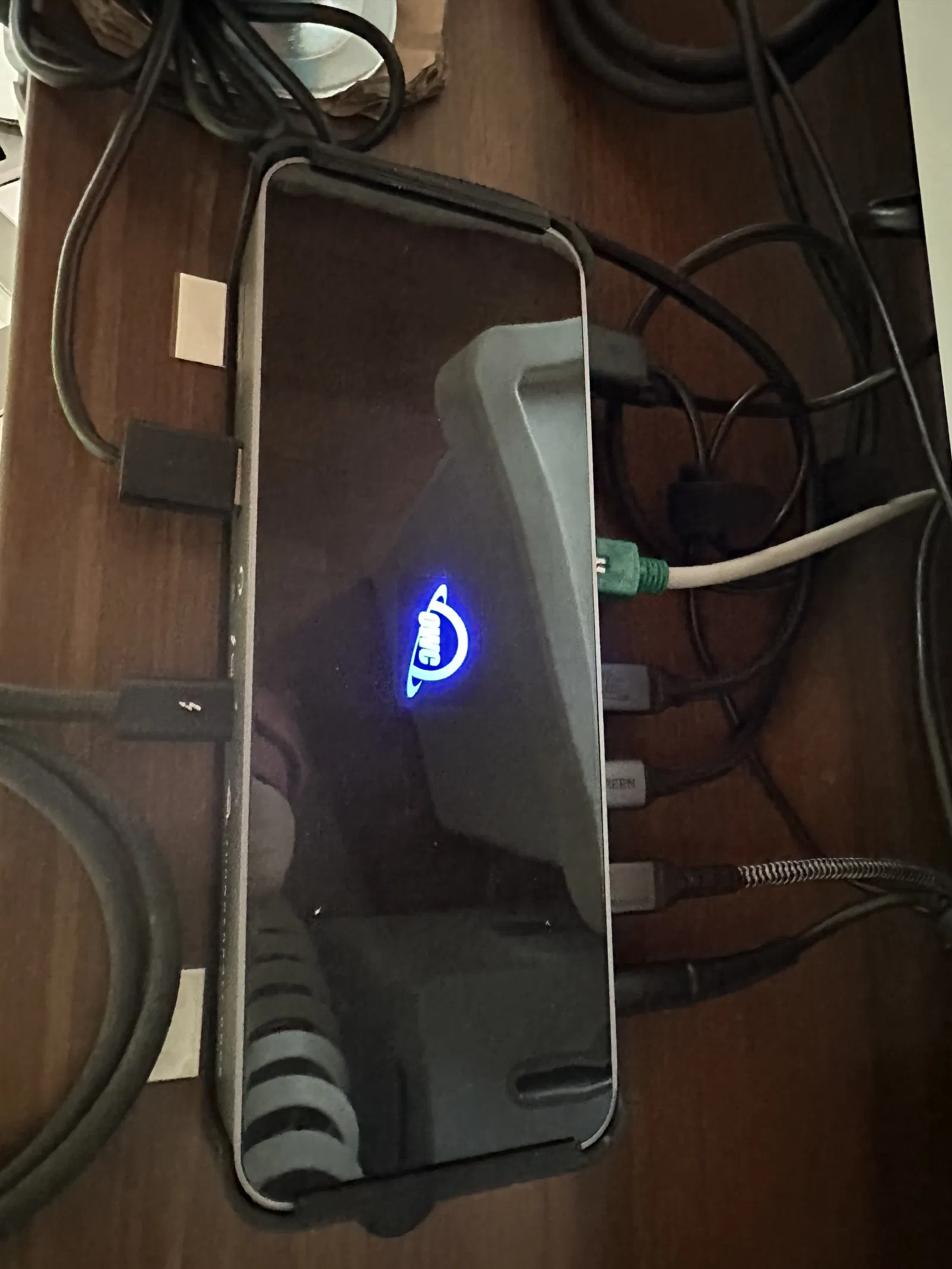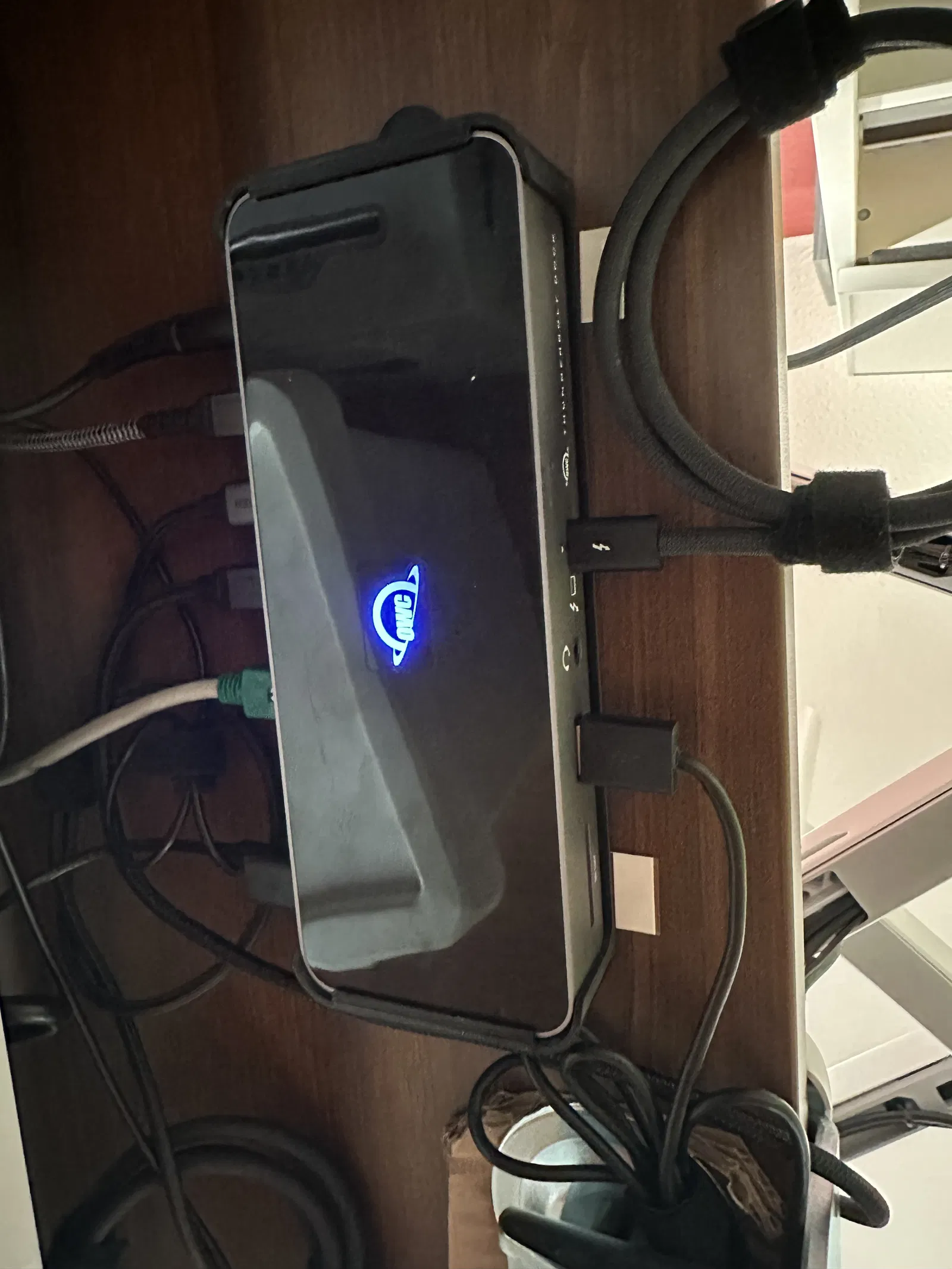 Dung tích bên trong được thiết kế cho chân đế của dock hướng vào bên trong giá đỡ, nghĩa là đặt dock ngược lại, khi gắn nó vào mặt dưới của bàn.