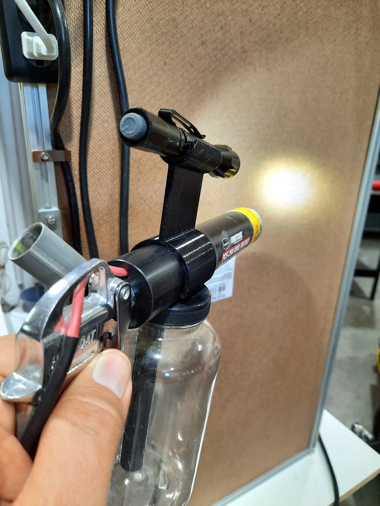 Booth phun sơn quá tối? Thêm một đèn pin nhẹ giá 7 đô la vào khẩu súng Eastwood của bạn. Nhấp vào lắp đặt, không cần ốc vít, giữ chắc chắn và rất đẹp. Góc điều chỉnh cho khoảng cách 12" từ mục tiêu phun.
