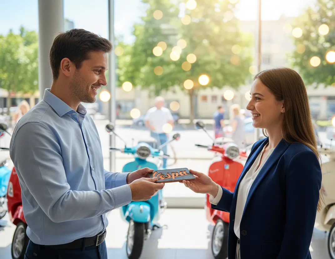 Biển hiệu VESPA có thể thay đổi kích thước. Khuyến khích in hai màu.