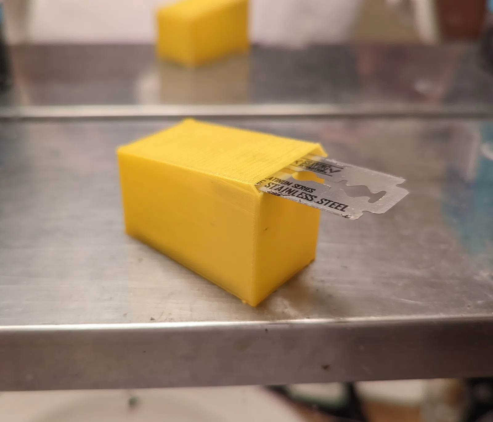 Tao thiết kế cái thùng nhỏ này để chứa lưỡi dao cạo an toàn. Hộp này chứa được cả chục cái lưỡi dao cạo an toàn đã qua sử dụng, phù hợp cho dao cạo 2 lưỡi và 1 lưỡi. Nhớ tắt support và bật bridging khi in.