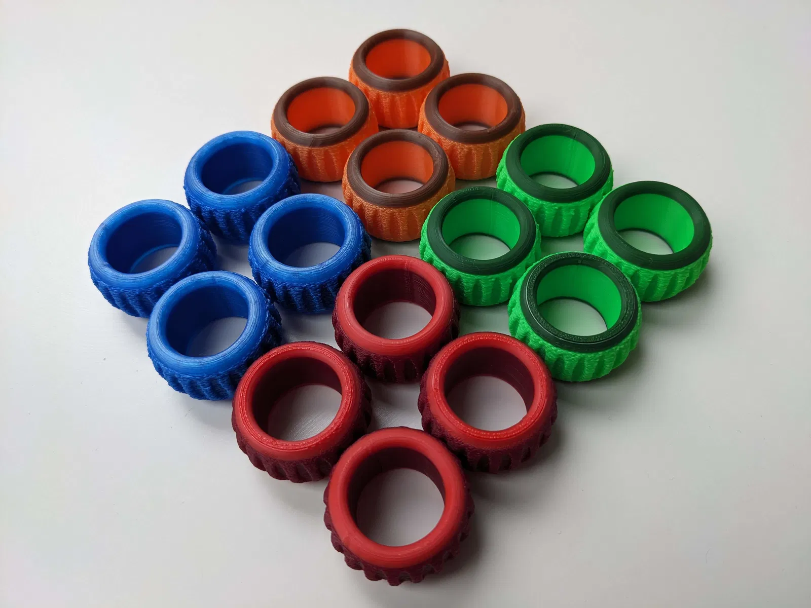 Chiếc woggle (vòng khăn quàng cổ) thứ hai trong loạt "đơn giản" của mình. Chiếc vòng có các khía có thể in một hoặc nhiều màu. Để đẹp hơn, bạn có thể chỉ dùng cài đặt fuzzy skin cho phần giữa của vòng.