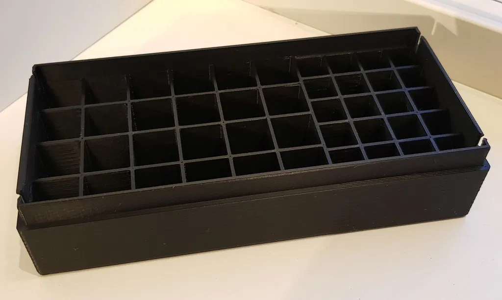 Lưu trữ tới 24 pin AA và 20 pin AAA trong một hộp duy nhất, lấy cảm hứng từ thiết kế gốc nhưng có nhiều cải tiến. Hộp này phù hợp cho cả pin sạc, với các hàng 4 pin tiện lợi và vách dày 1.2mm cho phép in tốt với nhiều loại đầu phun khác nhau. Lý tưởng để sắp xếp pin gọn gàng và tiết kiệm không gian.