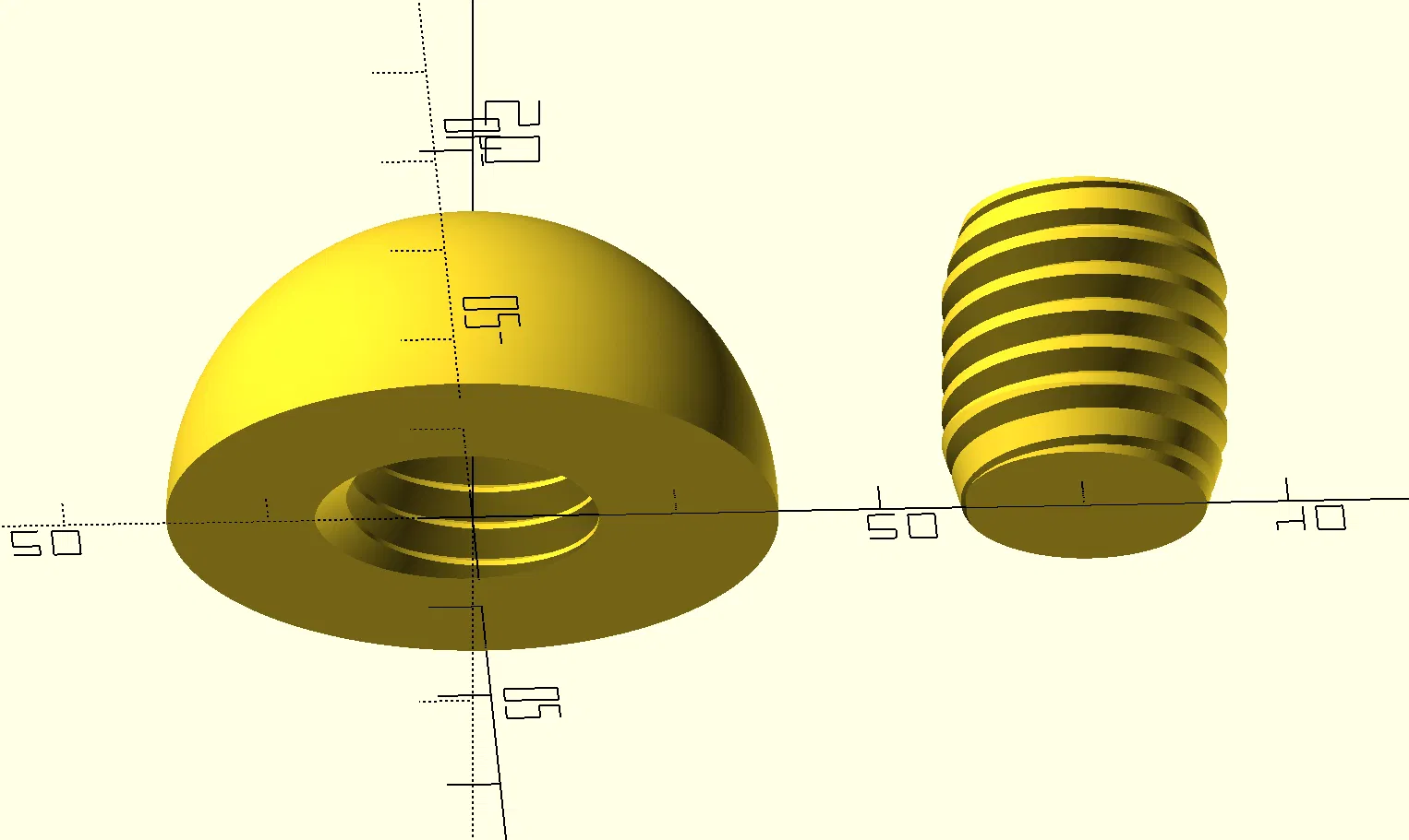 Tôi cũng đã bao gồm tập lệnh OpenSCAD mà tôi đã sử dụng để tạo ra mô hình này. Nó sử dụng module 'Threads' của Ryan Colyer trên OpenSCAD.