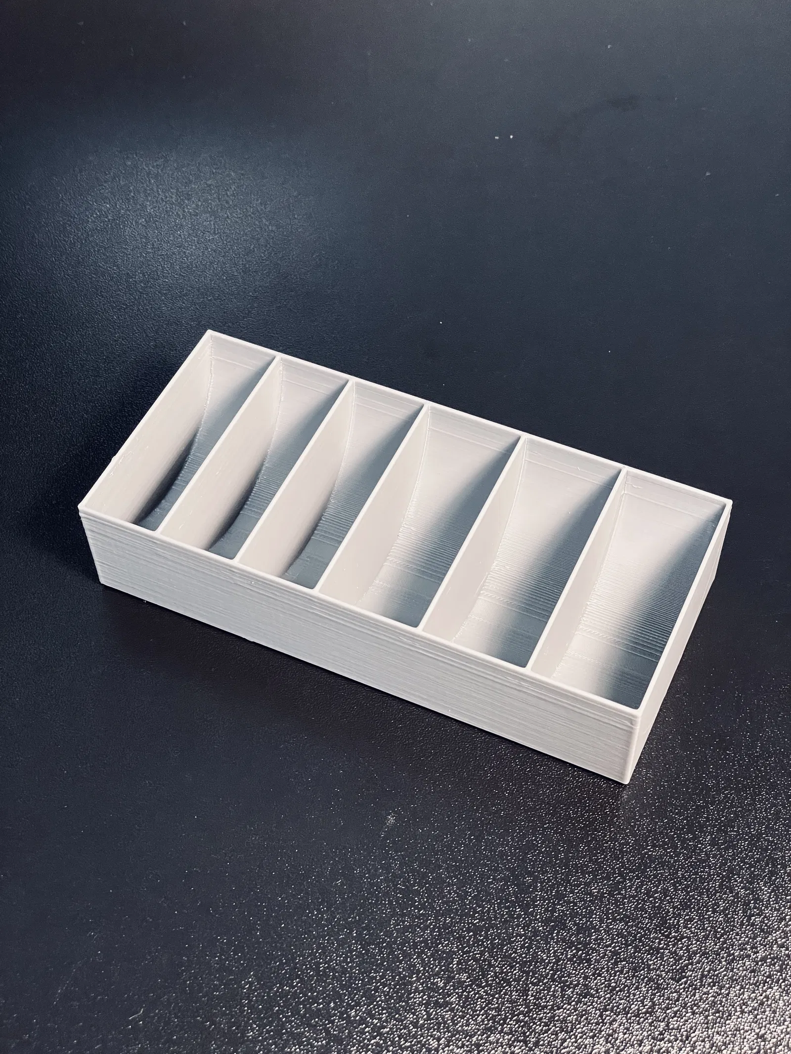 Mẫu giá đỡ băng keo đơn giản, có thể chứa tối đa 6 cuộn với các kích cỡ khác nhau. Rất phù hợp để tổ chức không gian làm việc, chỉ cần in với vật liệu cứng, không cần hỗ trợ.