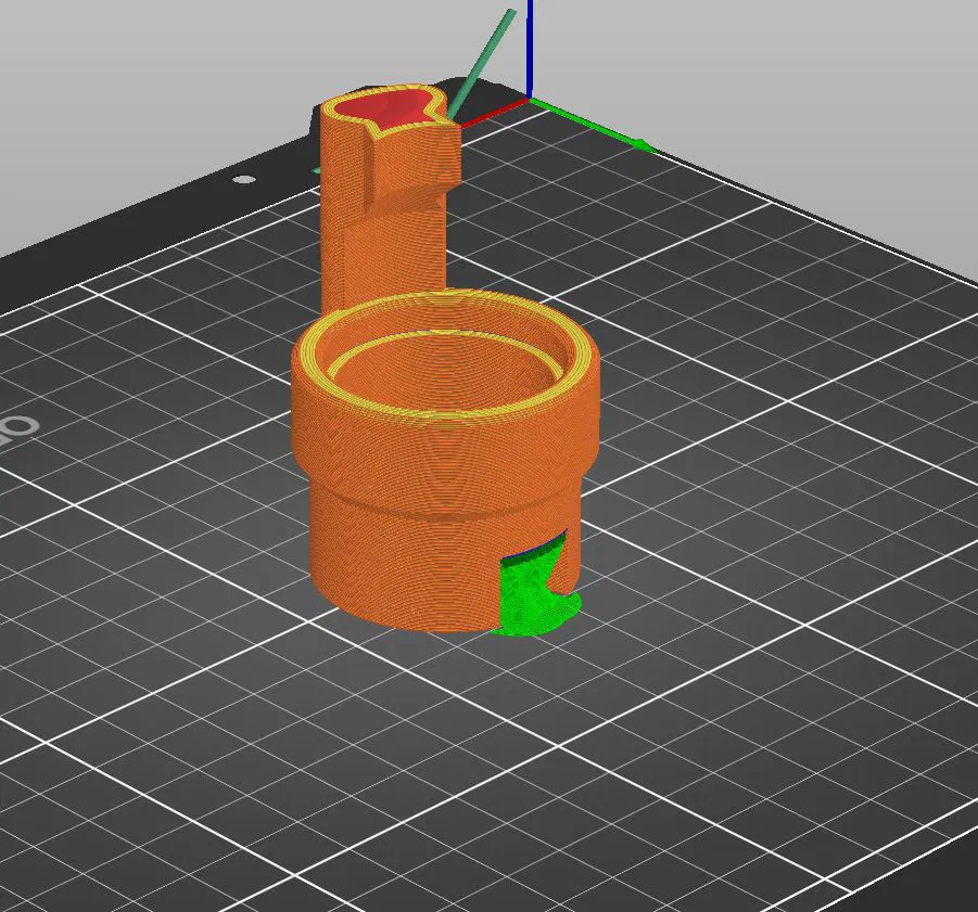 In bằng máy Prusa MK4 với: Chất liệu: PETG, không rõ thương hiệu Chiều cao lớp: 0,25 mm Chu vi: 5 Hỗ trợ: có, organic Ruột: gyroid, 15% Đầu phun: 0,4mm Cấu hình: standard MK4 Input Shaper 0,4 profile Thời gian in: ~1h13phút