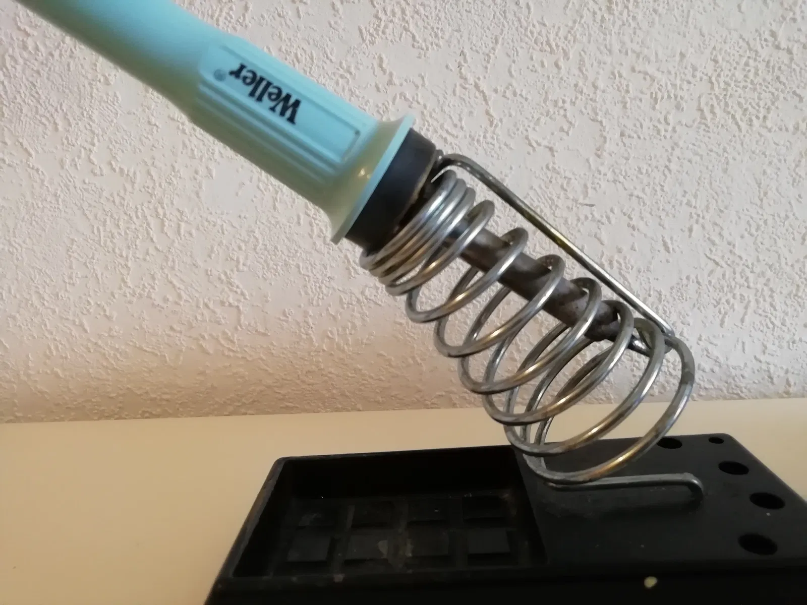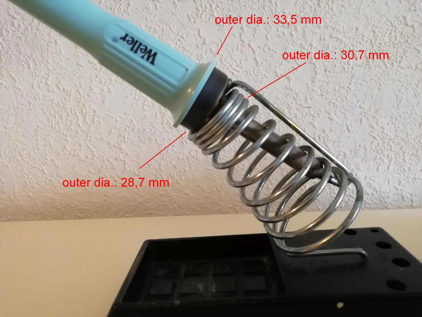 cách đây vài năm tui có tậu được một cây hàn cũ (Weller WECP 20). Tuy nó đủ dùng cho tui rồi nhưng gần đây tui mới để ý là trên cái đế hàn của nó có bị thiếu cái gì đó (xem hình 3). Nó không có cái lỗ để cắm cây hàn vô. Tận dụng cái khả năng tuyệt vời của 3D-printing, tui đã thiết kế một cái lỗ mới cho cái đế của tui.