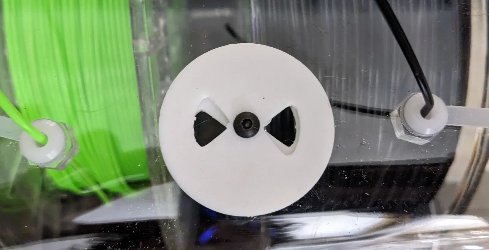 Lỗ thông hơi giúp hơi ẩm thoát ra khỏi hộp trong quá trình gia nhiệt. Van đóng/mở đơn giản này cho phép bạn điều chỉnh luồng không khí tùy theo mức độ ẩm, đảm bảo luồng không khí tối ưu qua cuộn dây khi in.