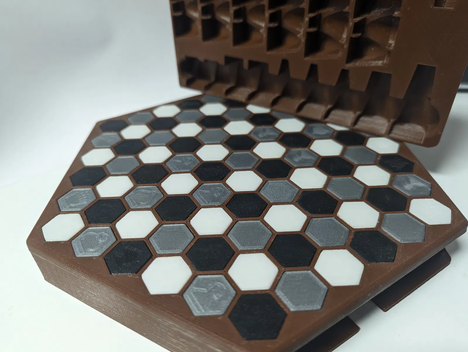 Bộ cờ vua lục giác này bao gồm cả hộp đựng, quân cờ và các ô có đánh dấu. Sản phẩm đã sẵn sàng để tích hợp nam châm tròn 5x2, mang đến trải nghiệm chơi cờ độc đáo và tiện lợi.