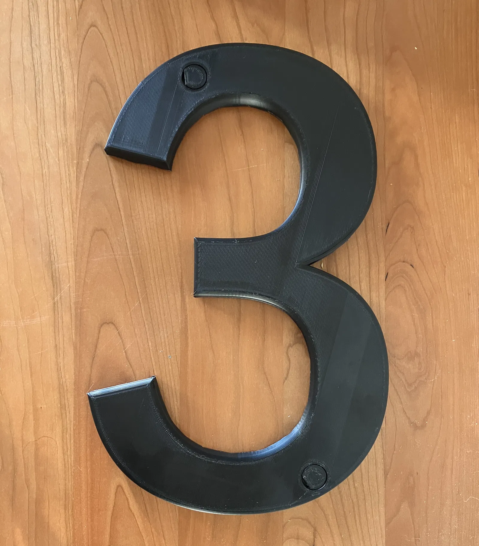 Những con số cỡ lớn theo font Franklin Gothic từ 0-9, cao khoảng 11 inch. Mỗi con số có 2 lỗ bắt vít có nắp đậy, được thiết kế để sử dụng vít kim loại #10 để treo.