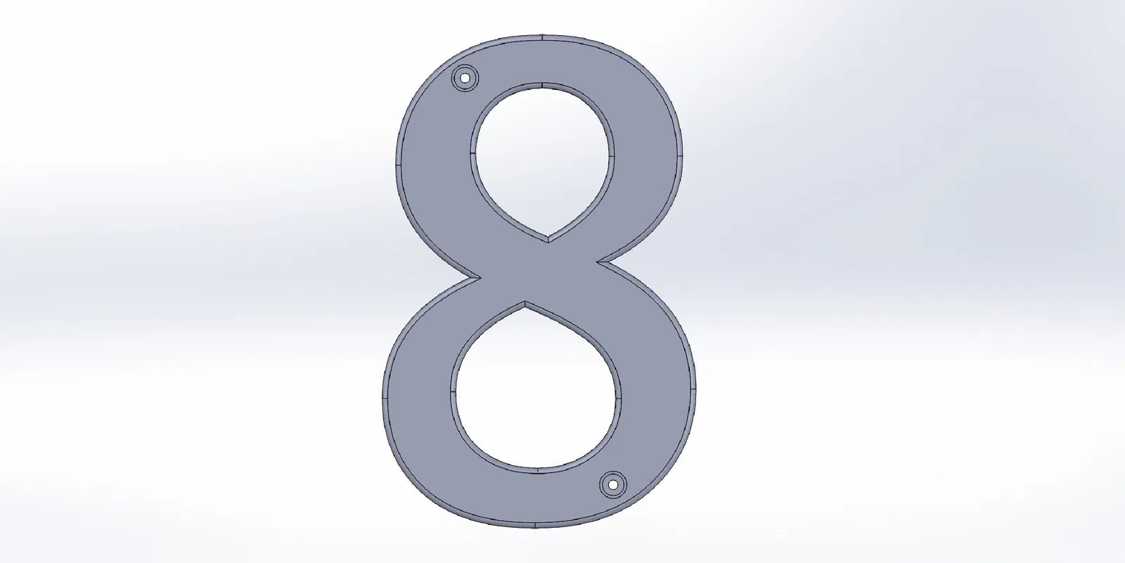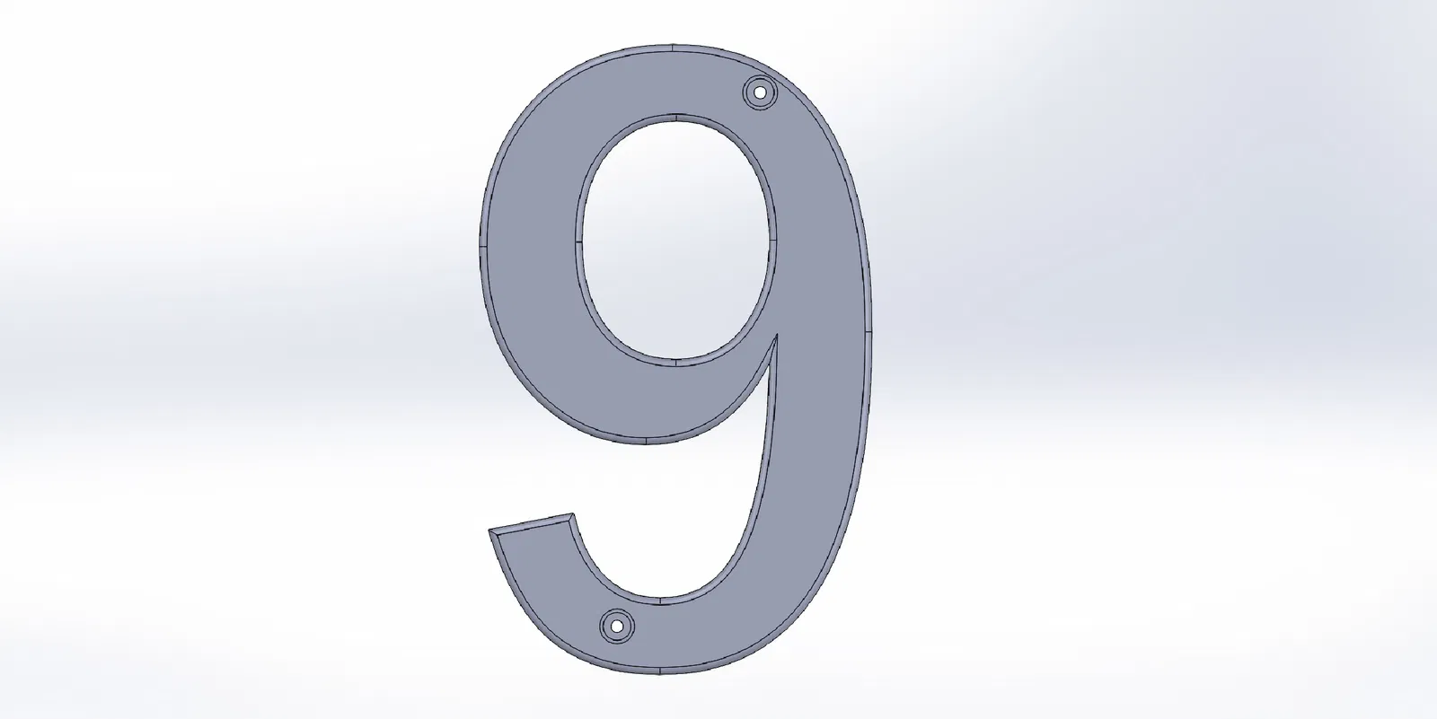 Những con số Franklin Gothic cỡ lớn, cao khoảng 11 inch, có lỗ bắt vít #10 và nắp đậy để che đầu vít. Có thể điều chỉnh kích thước và liên hệ nếu cần tùy chỉnh.