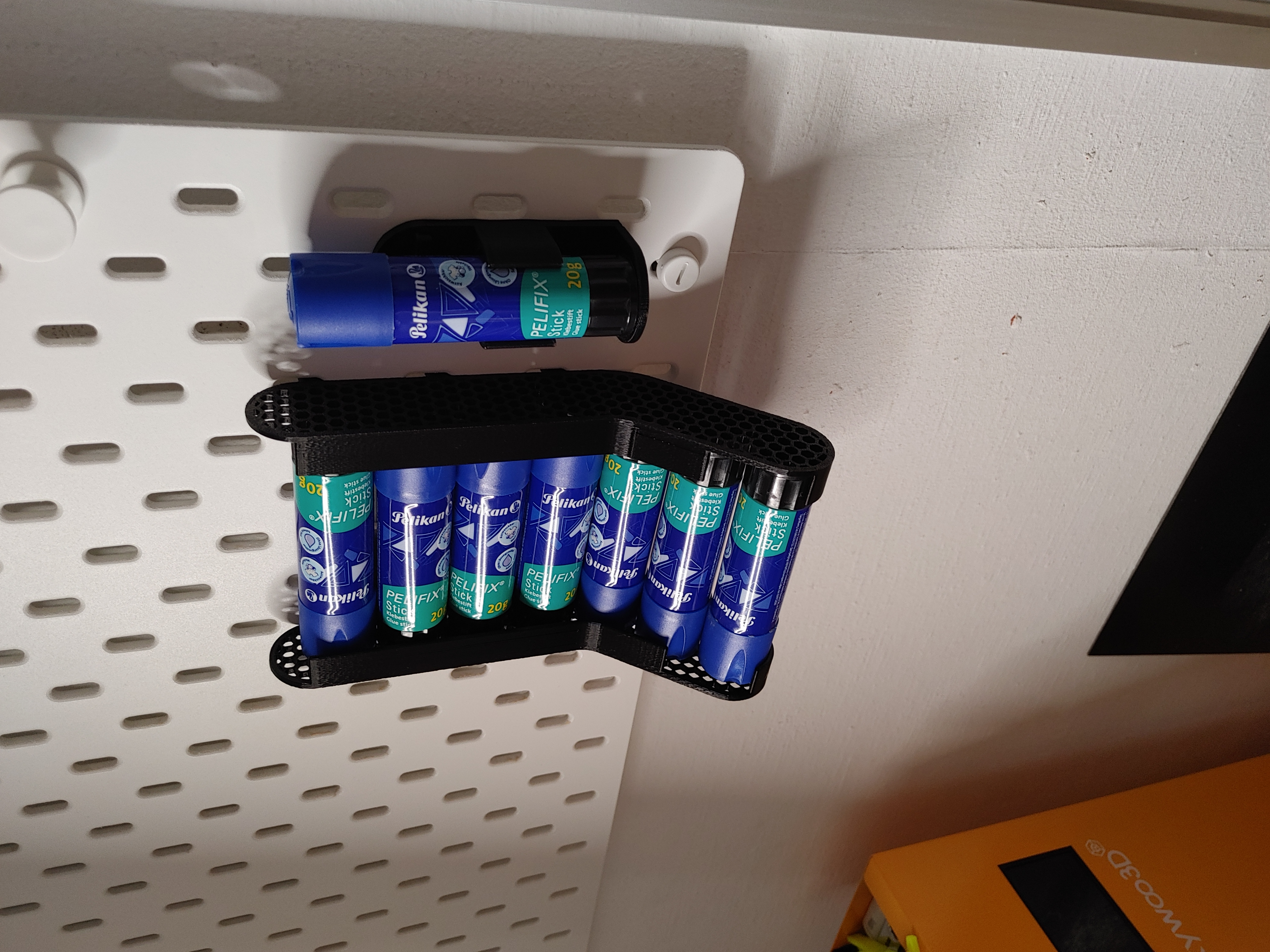 Ống đựng keo dán cho Ikea Skadis, bạn có thể cất 7 cây keo dán loại 20g và chừa 1 cây để xài liền.