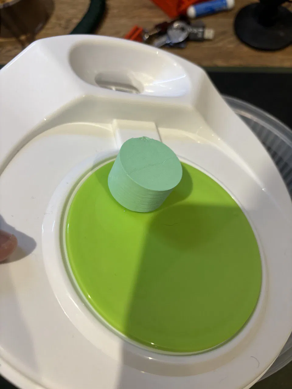 Thiết kế bằng Slicer và tao in bằng PLA. Cái độ dẻo của nó giúp gắn khít mà không cần răng ở dưới