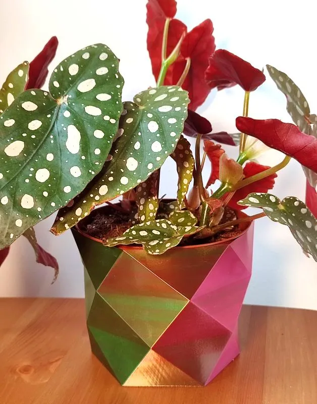 Chậu này được làm bằng OpenSCAD bằng cách đùn một hình lục giác ("hình tròn" với 6 cạnh). In tốt trong chế độ bình.